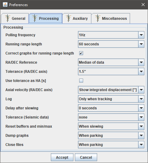 The processing tab allows to change various settings used in the processing and displaying of data.