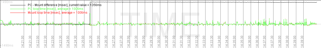 - The green line shows the length of a full loop of MountMonitor according to the PC.