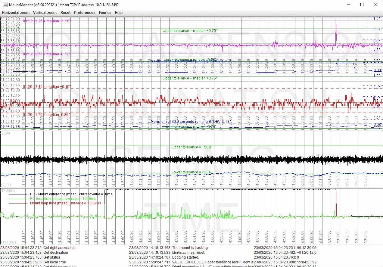 - The red line shows the length of a full loop of MountMonitor according to the mount-clock