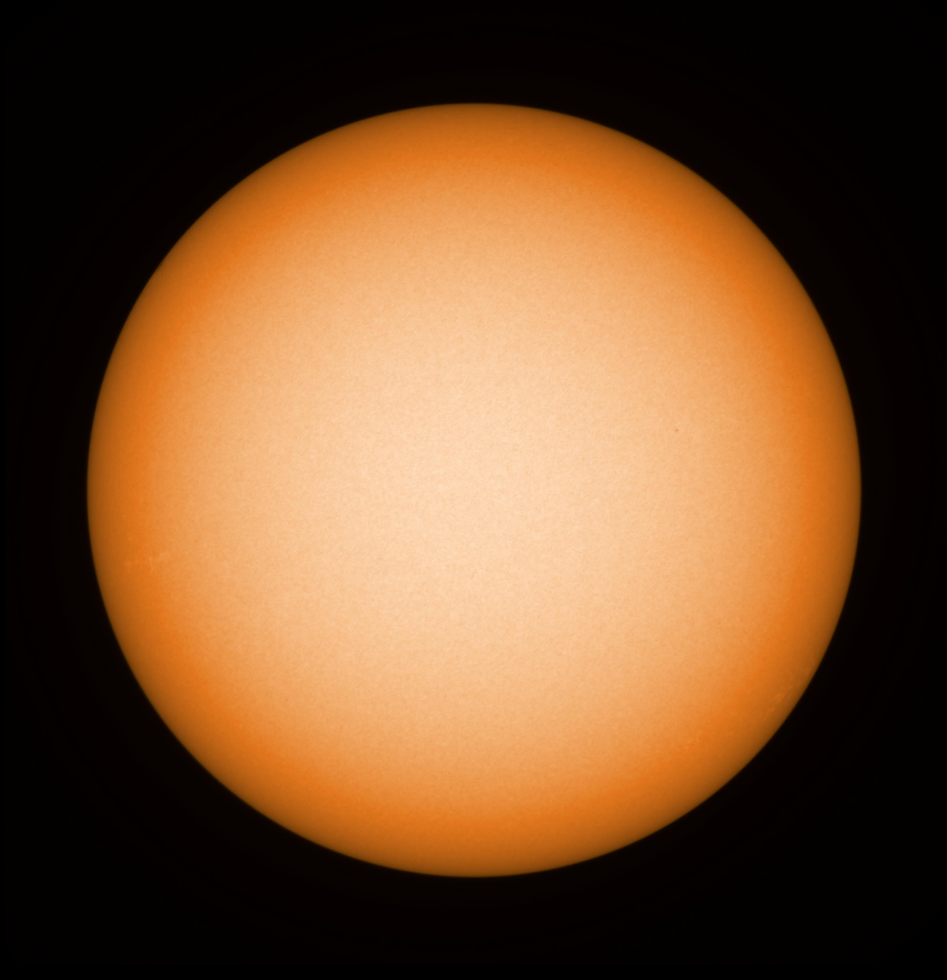 Observation date/time: 12 June 2021 @ 11:10 UTC Telescope: GTT60 (Galileo Type Telescope) Focal length: 1490mm (plano convex singlet) Aperture: 60mm Stop: 30mm Eyepiece: -75mm (plano concave singlet, 24mm aperture) Observation type: projection (353mm distance, 80mm diameter) Reference: Earth's rotation axis =================================================================== Total number of sunspots: 0 | |