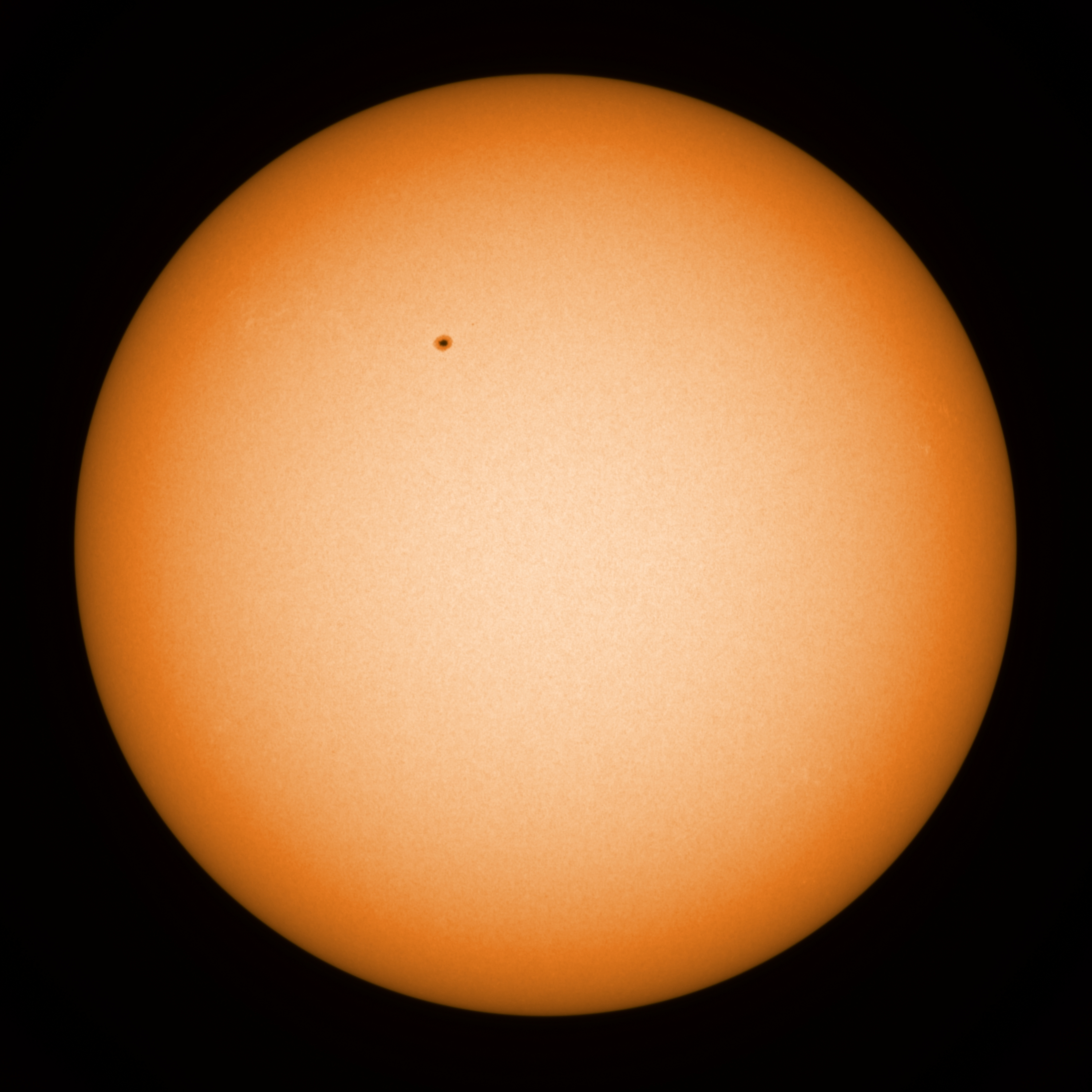 Observation date/time: 17 June 2021 @ 15:25 UTC Telescope: GTT60 (Galileo Type Telescope) Focal length: 1490mm (plano convex singlet) Aperture: 60mm Stop: 30mm Eyepiece: -75mm (plano concave singlet, 24mm aperture) Observation type: projection (353mm distance, 80mm diameter) Reference: Earth's rotation axis =================================================================== Total number of sunspots: 1 | |