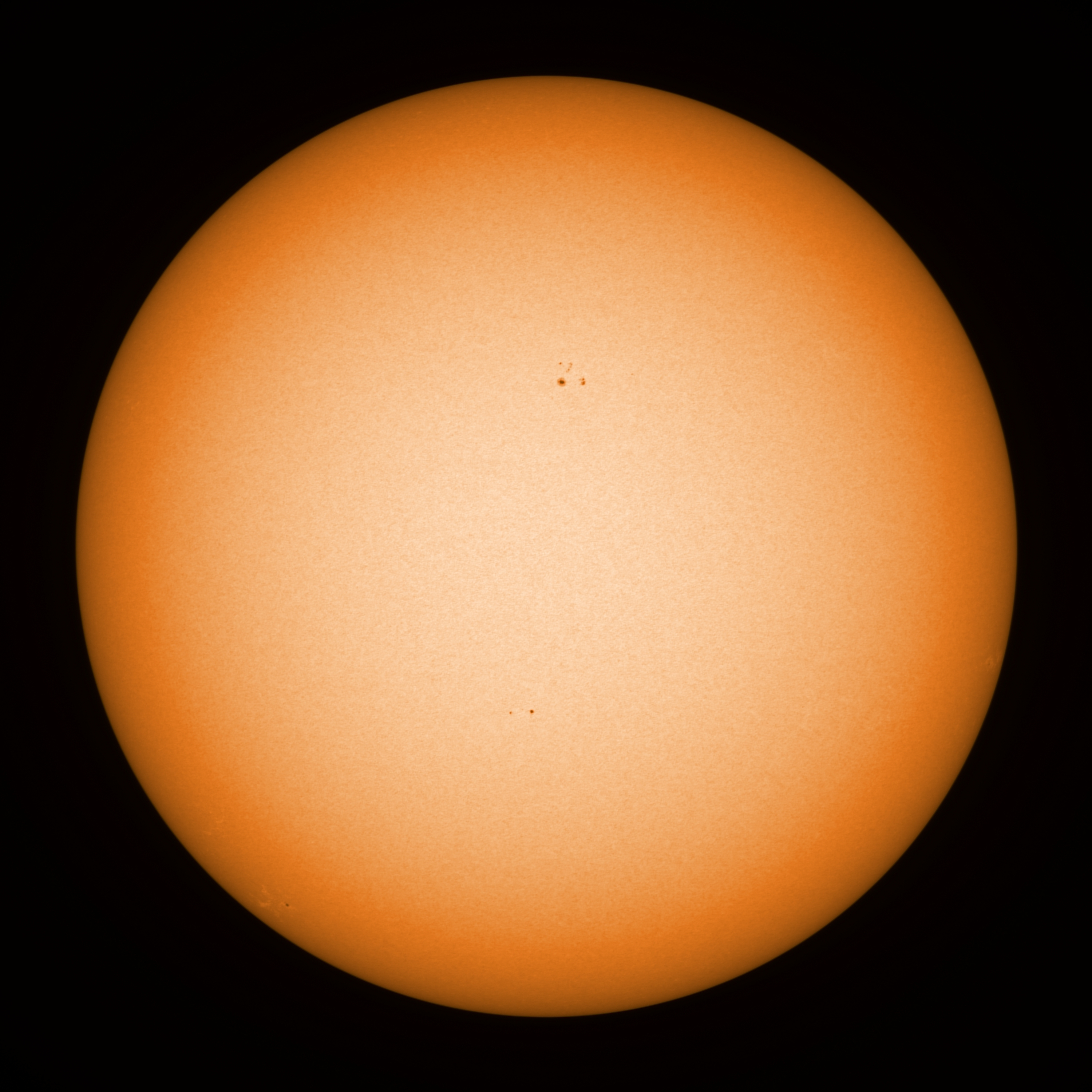 Observation date/time: 17 July 2021 @ 07:55 UTC Telescope: GTT60 (Galileo Type Telescope) Focal length: 1490mm (plano convex singlet) Aperture: 60mm Stop: 30mm Eyepiece: -75mm (plano concave singlet, 24mm aperture) Observation type: projection (353mm distance, 80mm diameter) Reference: Earth's rotation axis =================================================================== Total number of sunspots: 8 | |