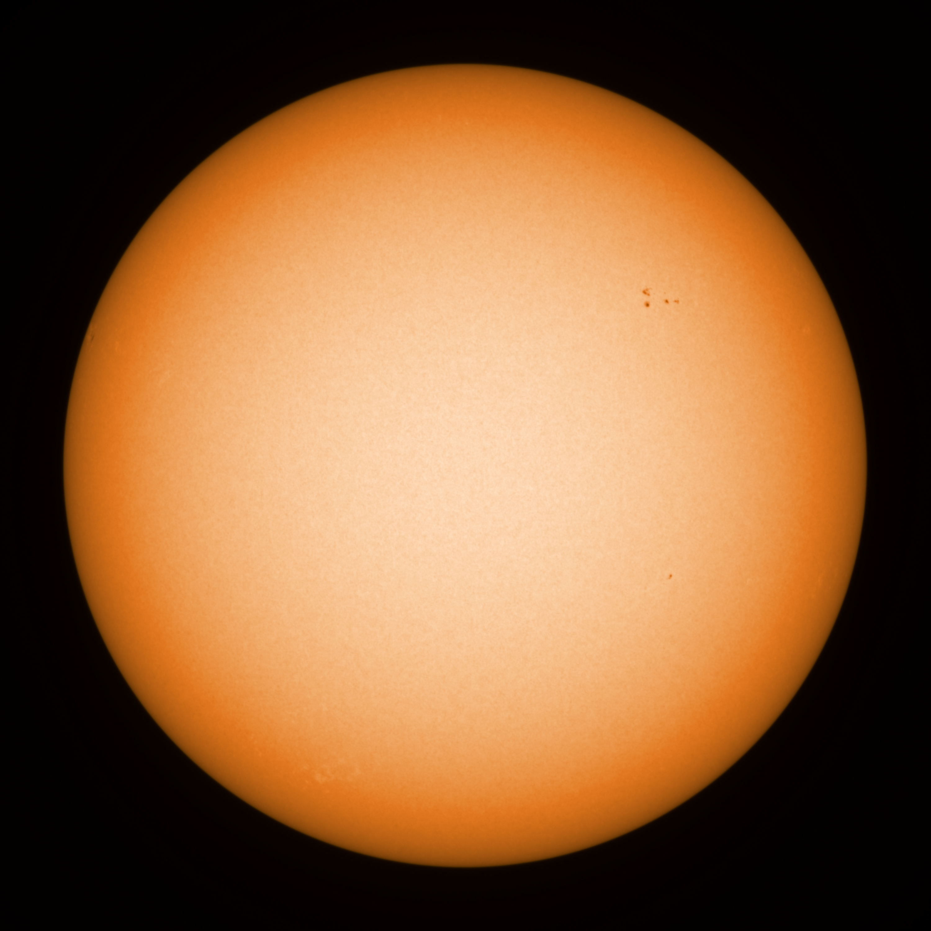 Observation date/time: 19 July 2021 @ 14:39 UTC Telescope: GTT60 (Galileo Type Telescope) Focal length: 1490mm (plano convex singlet) Aperture: 60mm Stop: 30mm Eyepiece: -75mm (plano concave singlet, 24mm aperture) Observation type: projection (353mm distance, 80mm diameter) Reference: Earth's rotation axis =================================================================== Total number of sunspots: 5 | |