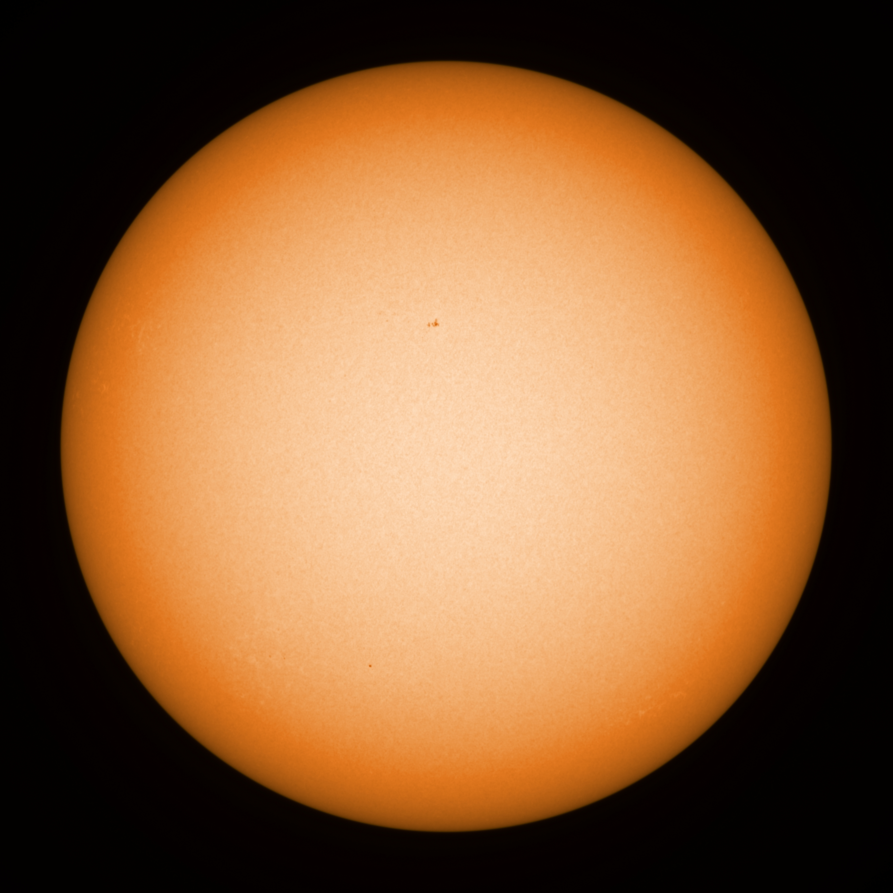 Observation date/time: 25 July 2021 @ 13:55 UTC Telescope: GTT60 (Galileo Type Telescope) Focal length: 1490mm (plano convex singlet) Aperture: 60mm Stop: 30mm Eyepiece: -75mm (plano concave singlet, 24mm aperture) Observation type: projection (353mm distance, 80mm diameter) Reference: Earth's rotation axis =================================================================== Total number of sunspots: 4 | |