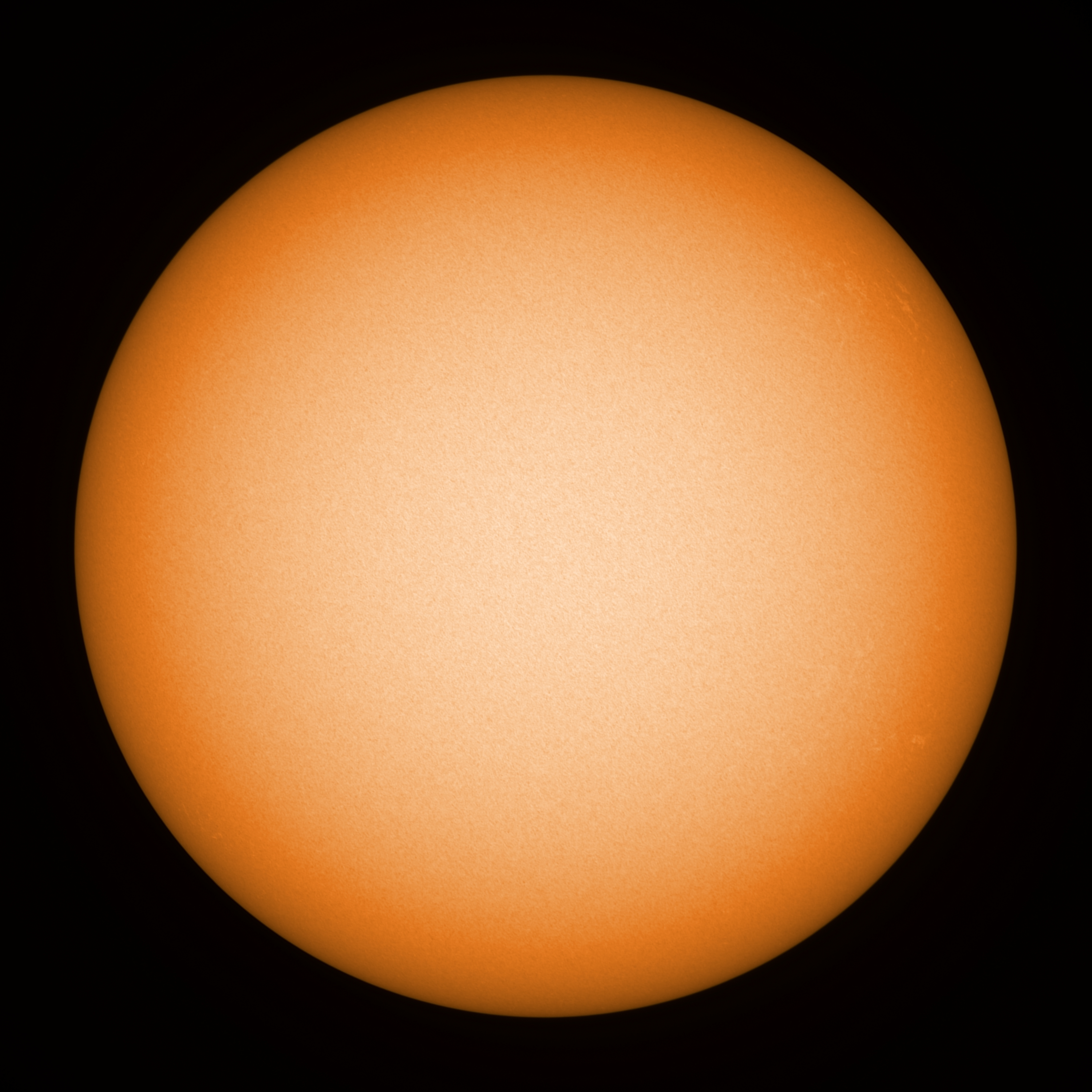 Observation date/time: 30 July 2021 @ 16:00 UTC Telescope: GTT60 (Galileo Type Telescope) Focal length: 1490mm (plano convex singlet) Aperture: 60mm Stop: 30mm Eyepiece: -75mm (plano concave singlet, 24mm aperture) Observation type: projection (353mm distance, 80mm diameter) Reference: Earth's rotation axis =================================================================== Total number of sunspots: 0 | |