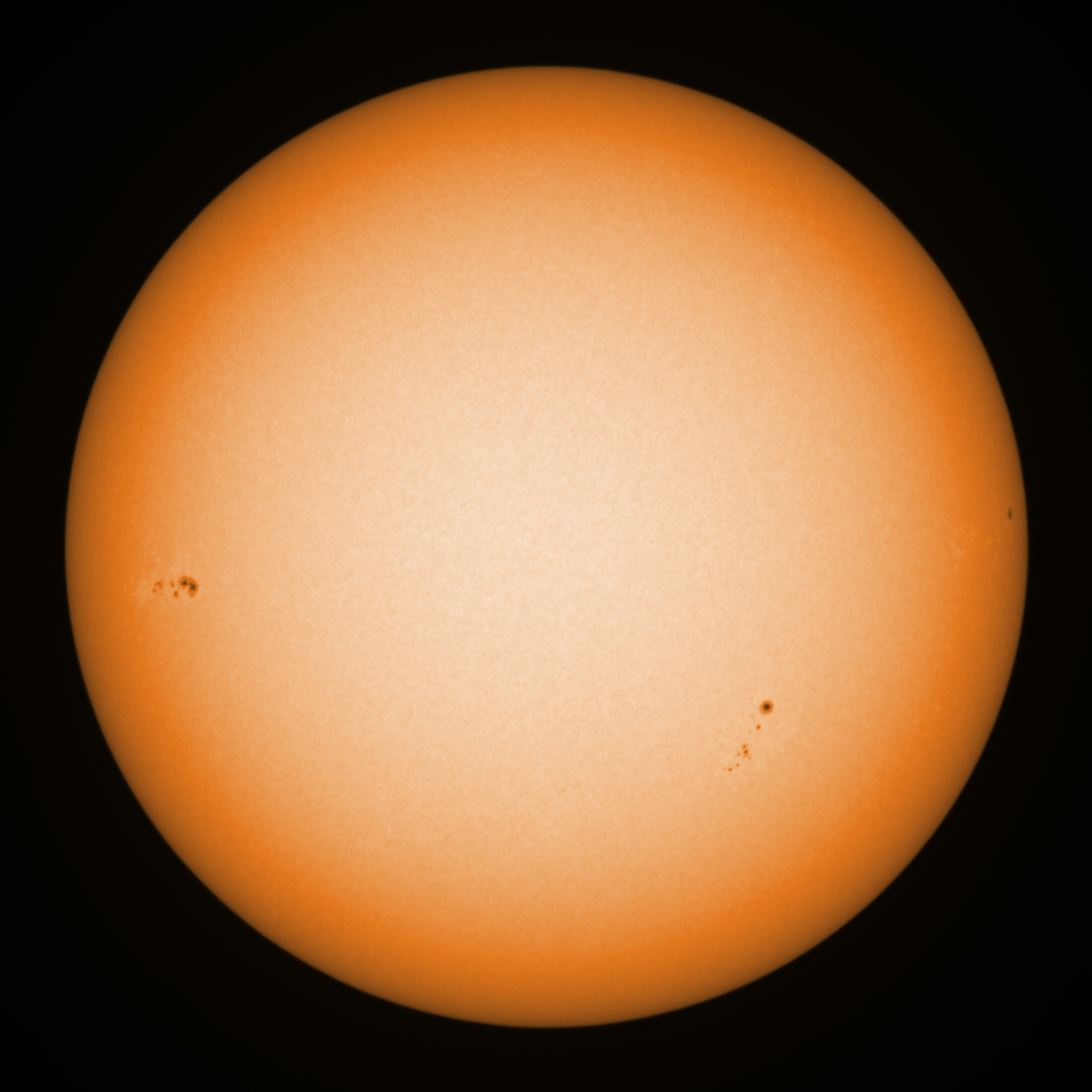 Today we had clear skies again with some scattered cirrus as an indication of the weather for the coming few days. Transparency was reasonable, seeing was reported excellent by the scintillation monitor, but in reality the Sun looked like rubber due to low frequency undulation. I made the following observation: