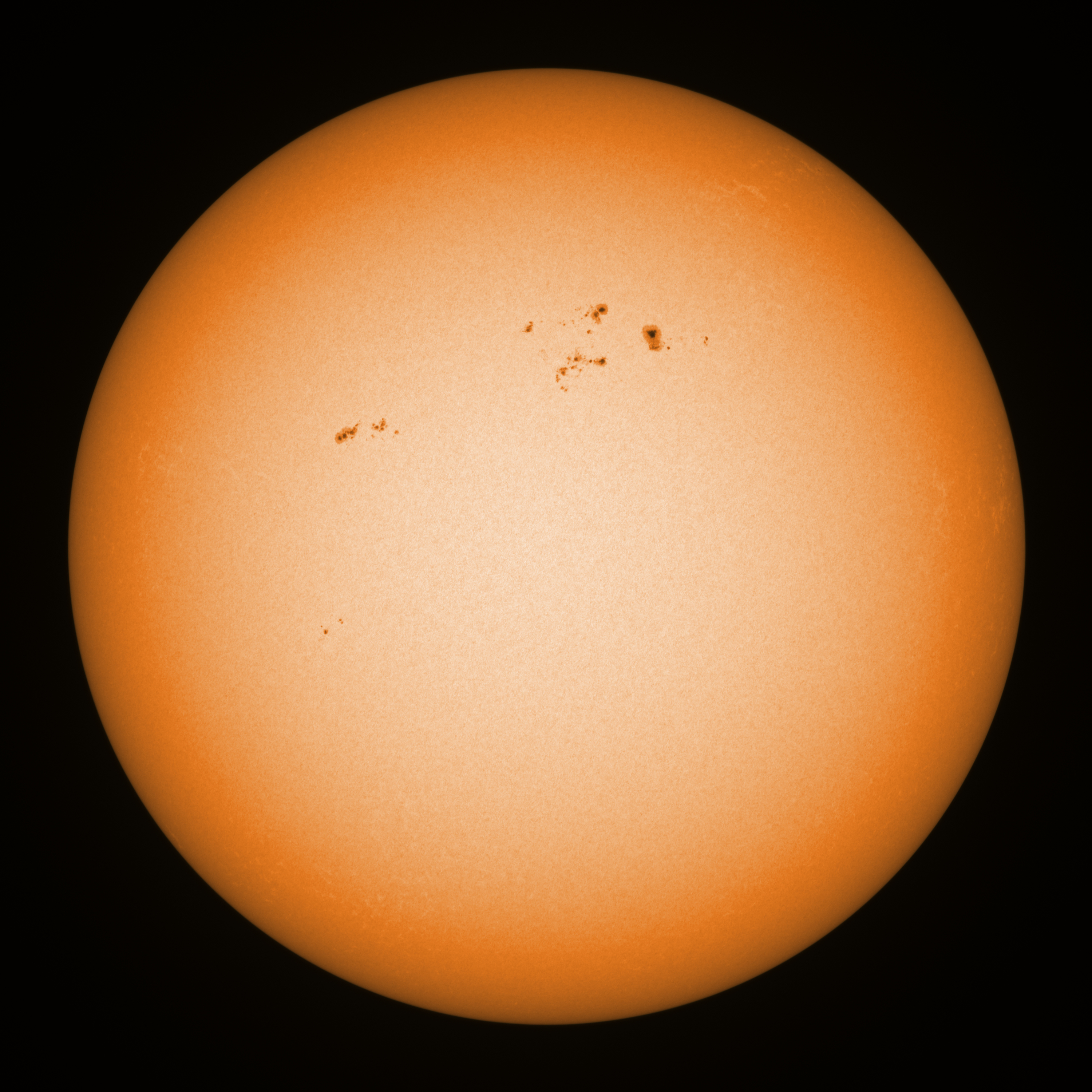 Observation date/time: 09 October 09:59 UTC Telescope: GTT60 (Galileo Type Telescope) Focal length: 1490mm (plano convex singlet) Aperture: 60mm Stop: 30mm Eyepiece: -75mm (plano concave singlet, 24mm aperture) Observation type: projection (347mm distance, 80mm diameter) Reference: Earth's rotation axis Exposure (transparency): 0.230ms Seeing (SSSMon): 2.0-2.5" (1.0" at best) =================================================================== Total number of sunspots: 42 | |