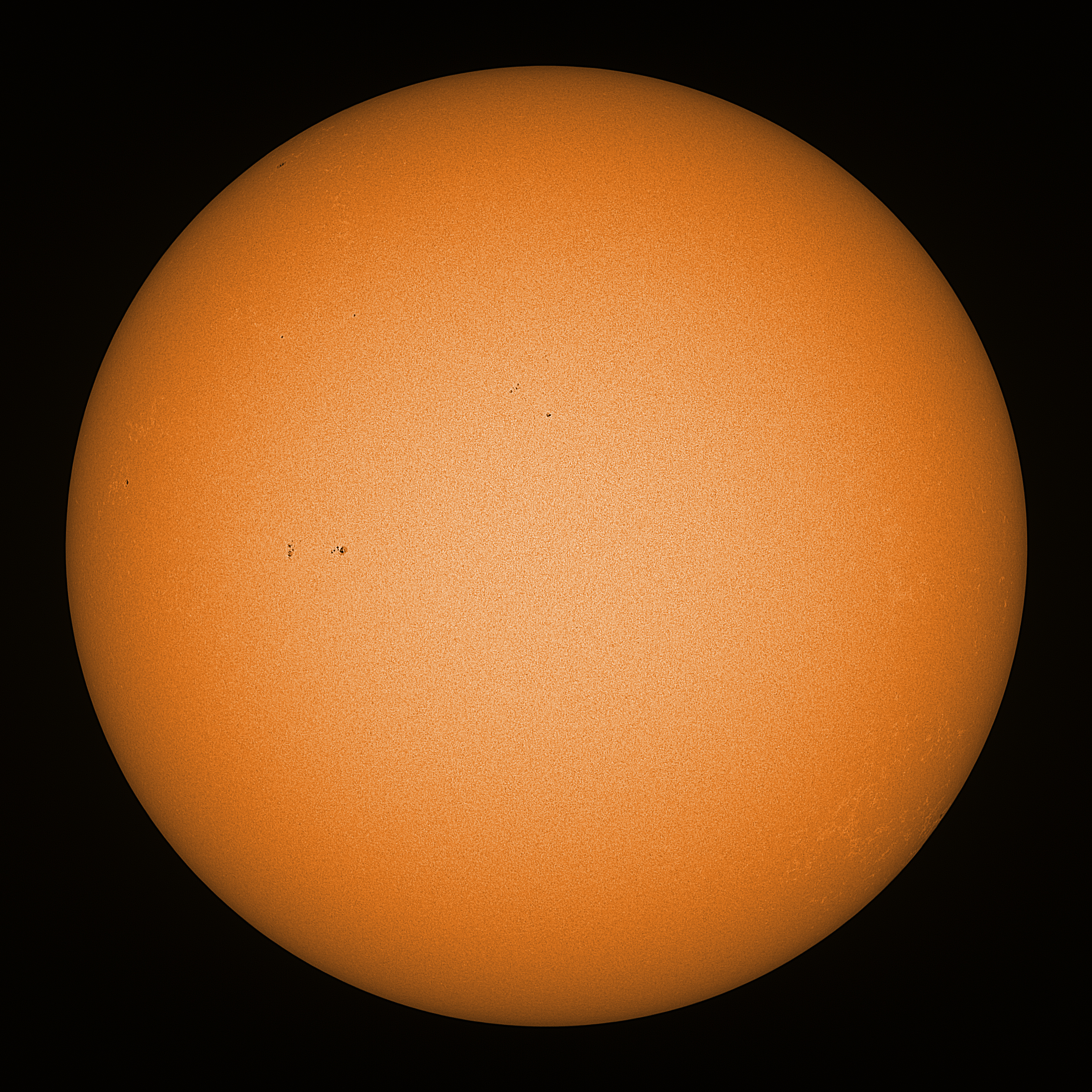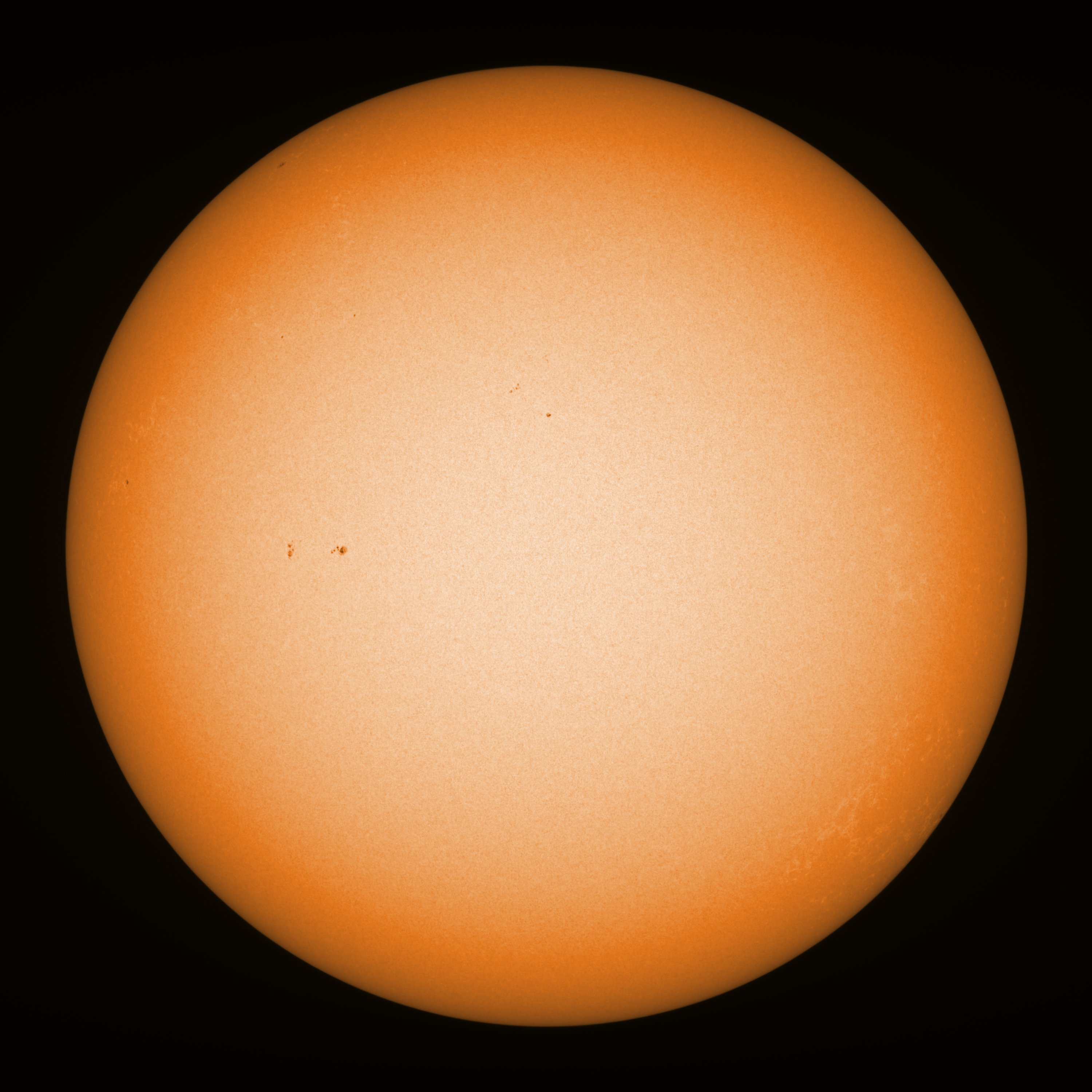 Observation date/time: 14 March 2024 09:04 UTC Telescope: GTT60 (Galileo Type Telescope) Focal length: 1490mm (plano convex singlet) Aperture: 60mm Stop: 30mm Eyepiece: -75mm (plano concave singlet, 24mm aperture) Observation type: projection (344mm distance, 80mm diameter) Reference: Earth's rotation axis Exposure (transparency): 0.550ms (using 82nm bandwidth green filter) Seeing (SSSMon): 1.5-2.5" (1.0" at best) =================================================================== Total number of sunspots: 11 | |
