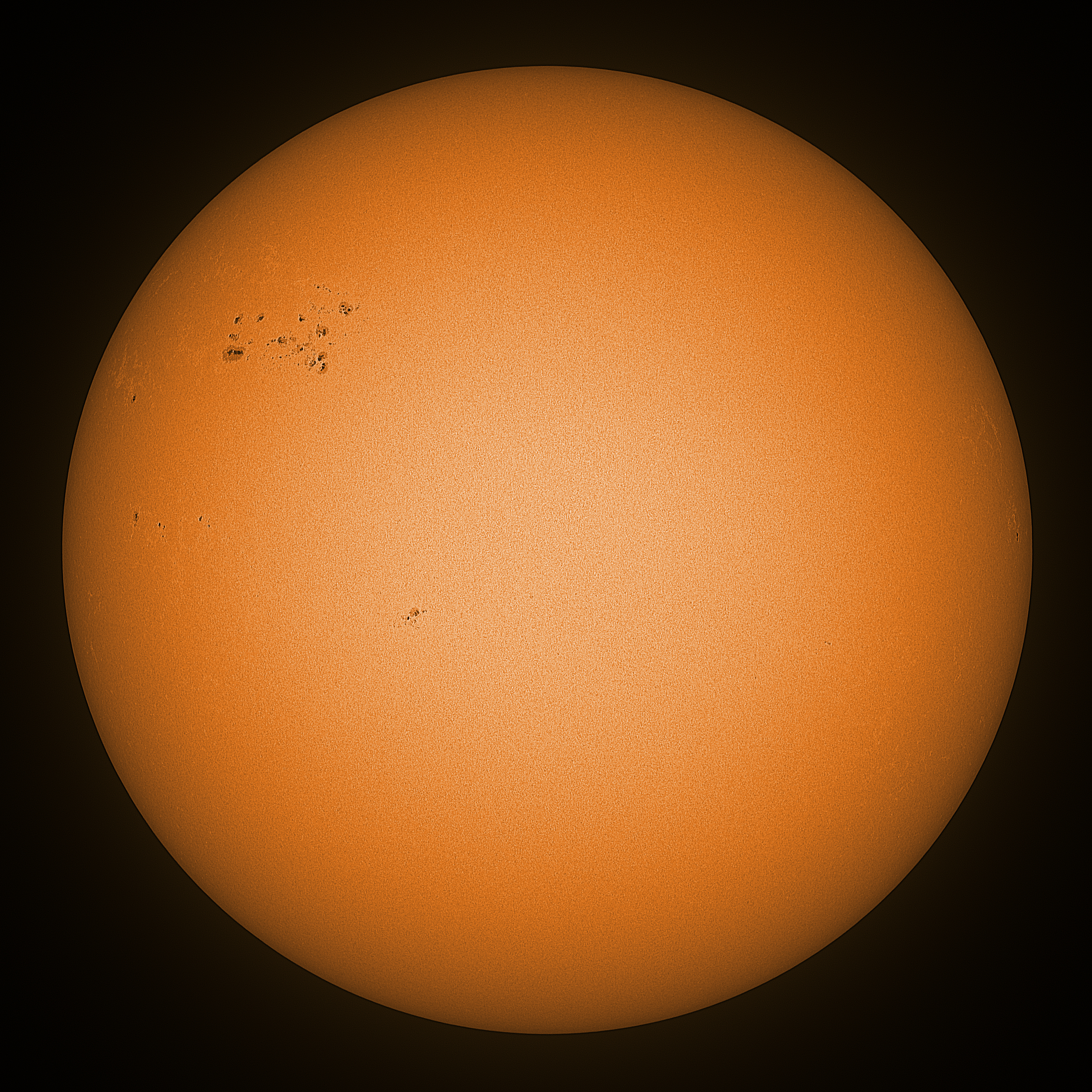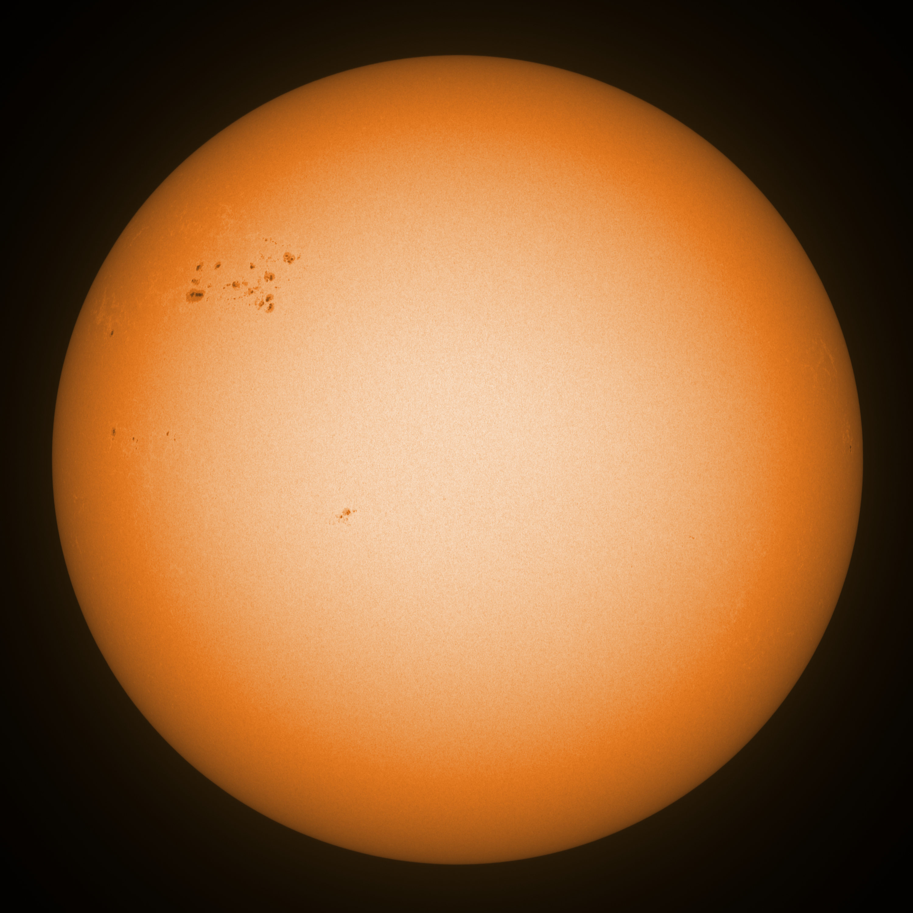 Observation date/time: 31 January 2025 10:50 UTC Telescope: GTT60 (Galileo Type Telescope) Focal length: 1490mm (plano convex singlet) Aperture: 60mm Stop: 30mm Eyepiece: -75mm (plano concave singlet, 24mm aperture) Observation type: projection (341mm distance, 80mm diameter) Reference: Earth's rotation axis Exposure (transparency): 1.030ms (using 82nm bandwidth green filter) Seeing (SSSMon): 1.2-1.4" (0.6" at best) =================================================================== Total number of sunspots: 41 | |