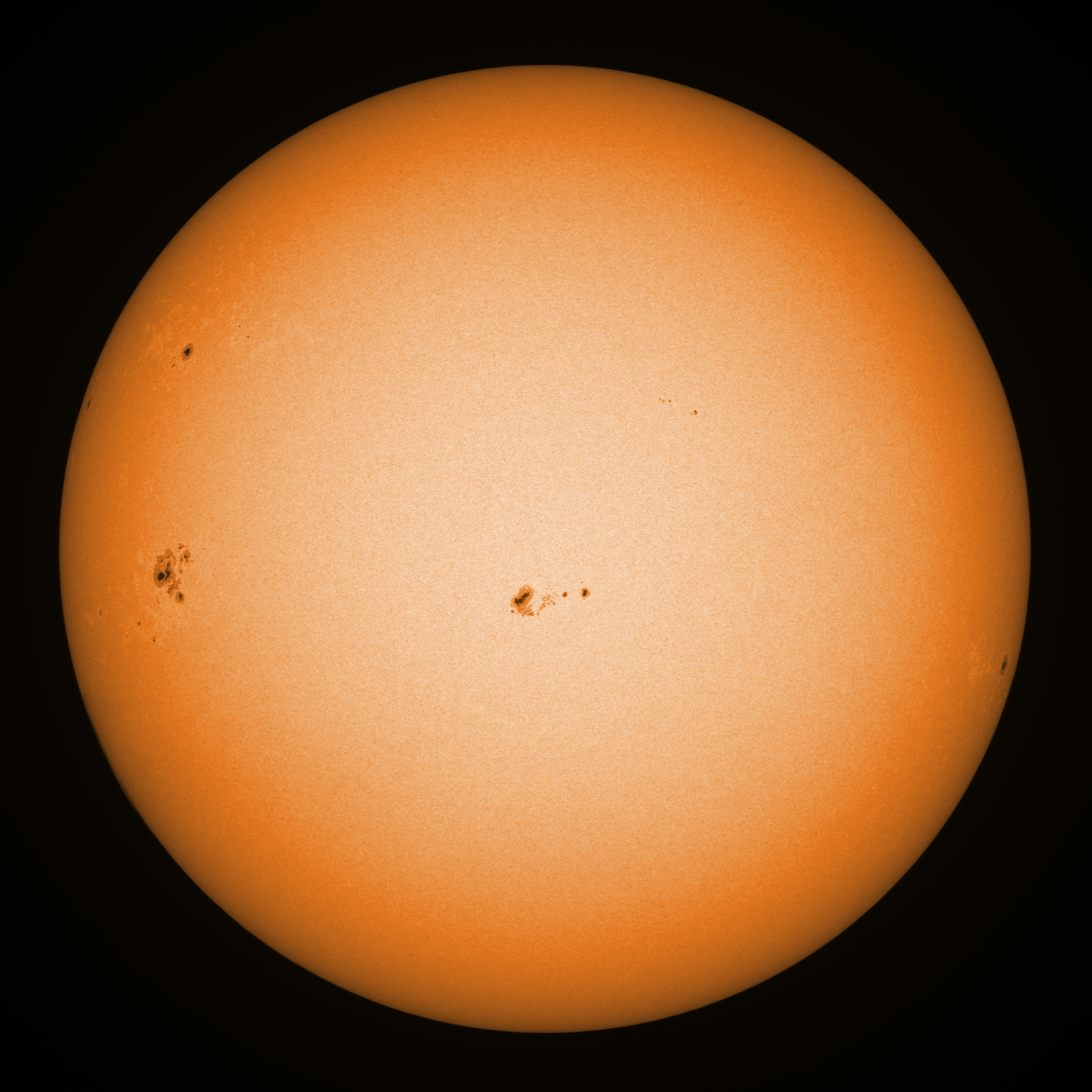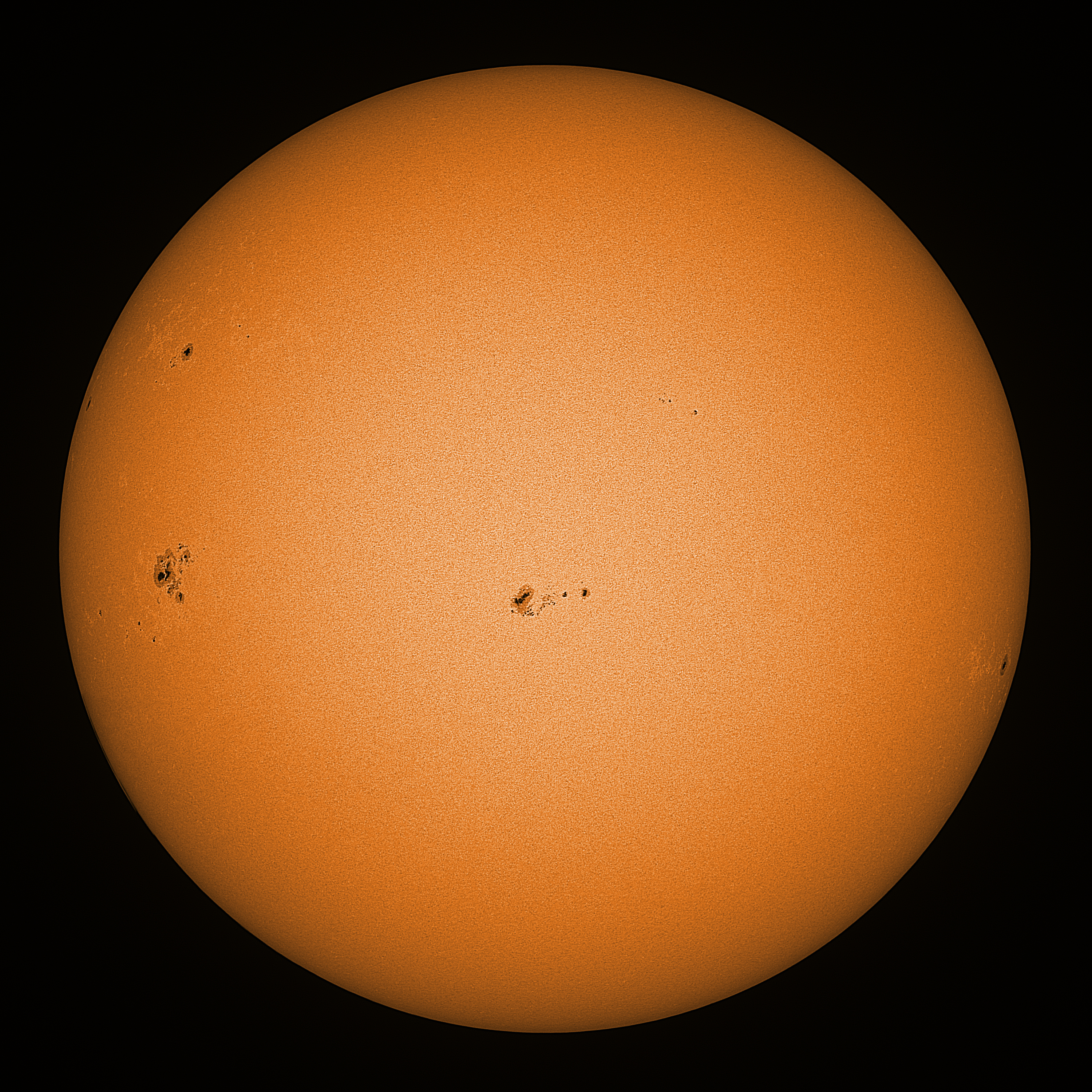 Observation date/time: 16 January 2026 12:28 UTC Telescope: GTT60 (Galileo Type Telescope) Focal length: 1490mm (plano convex singlet) Aperture: 60mm Stop: 30mm Eyepiece: -75mm (plano concave singlet, 24mm aperture) Observation type: projection (338mm distance, 80mm diameter) Reference: Earth's rotation axis Exposure (transparency): 0.530ms (using 82nm bandwidth green filter) Seeing (SSSMon): 1.4-1.8" (0.8" at best) =================================================================== Total number of sunspots: 33 | |