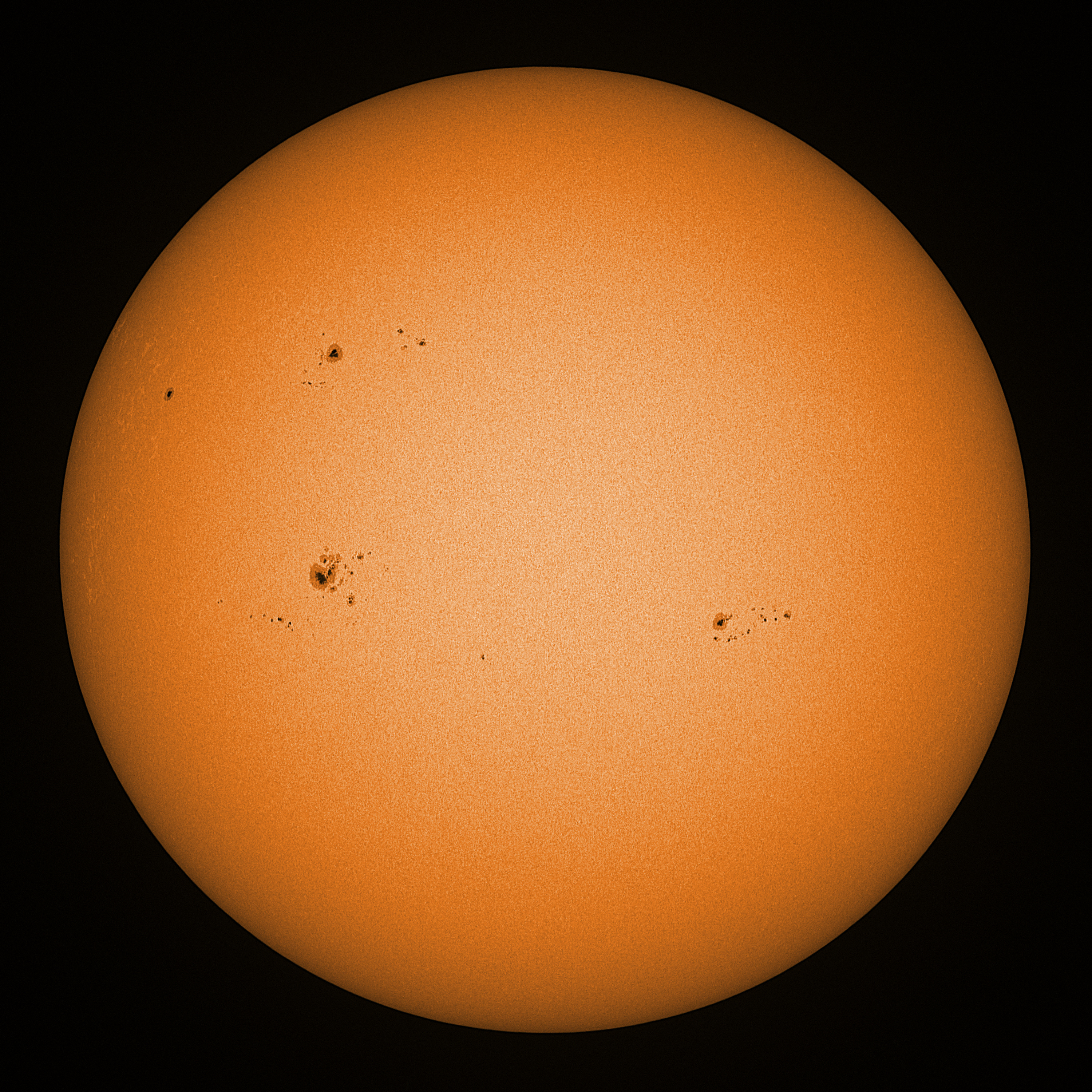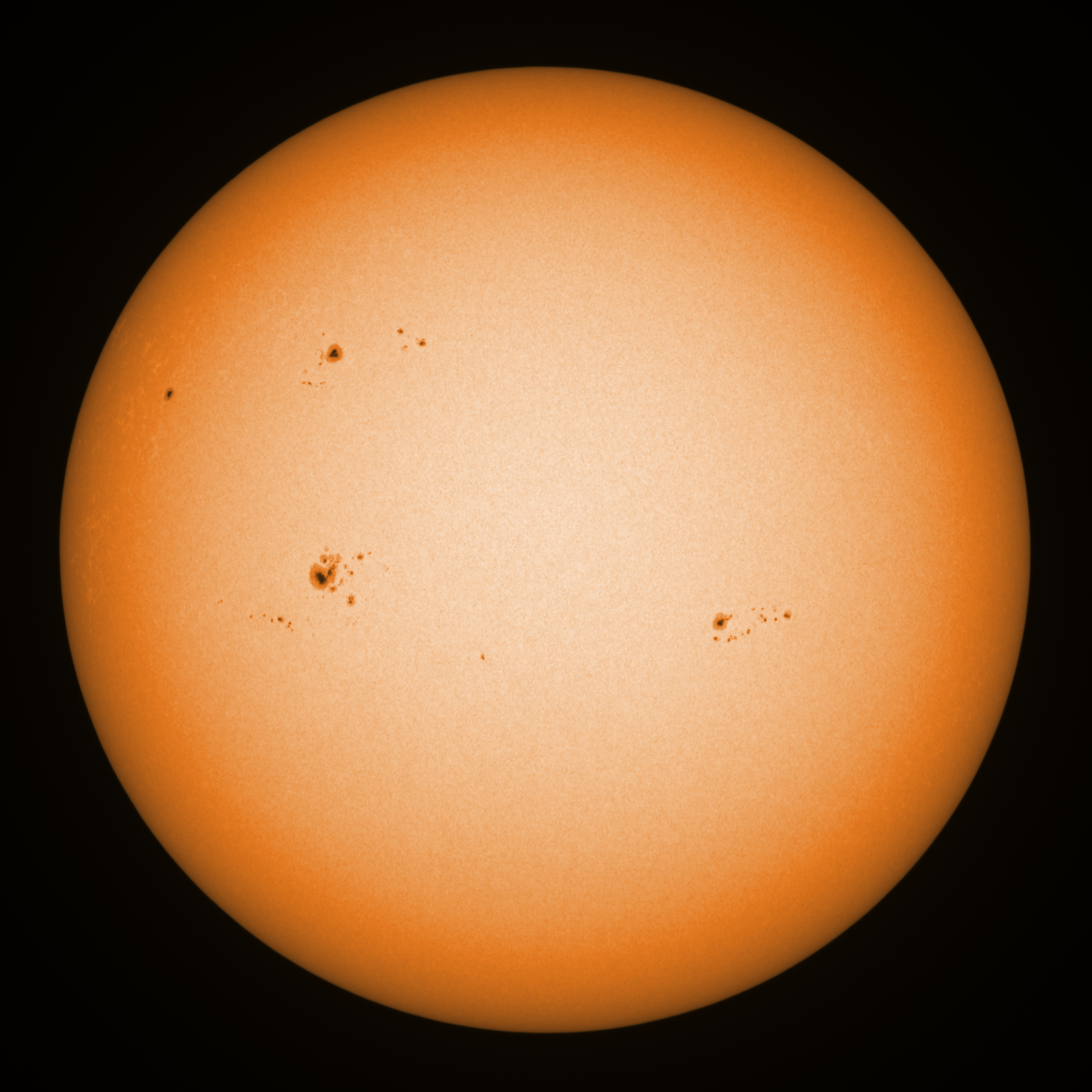 Observation date/time: 18 January 2026 09:56 UTC Telescope: GTT60 (Galileo Type Telescope) Focal length: 1490mm (plano convex singlet) Aperture: 60mm Stop: 30mm Eyepiece: -75mm (plano concave singlet, 24mm aperture) Observation type: projection (338mm distance, 80mm diameter) Reference: Earth's rotation axis Exposure (transparency): 1.380ms (using 82nm bandwidth green filter) Seeing (SSSMon): 4.0-4.5" (2.0" at best) =================================================================== Total number of sunspots: 43 | |