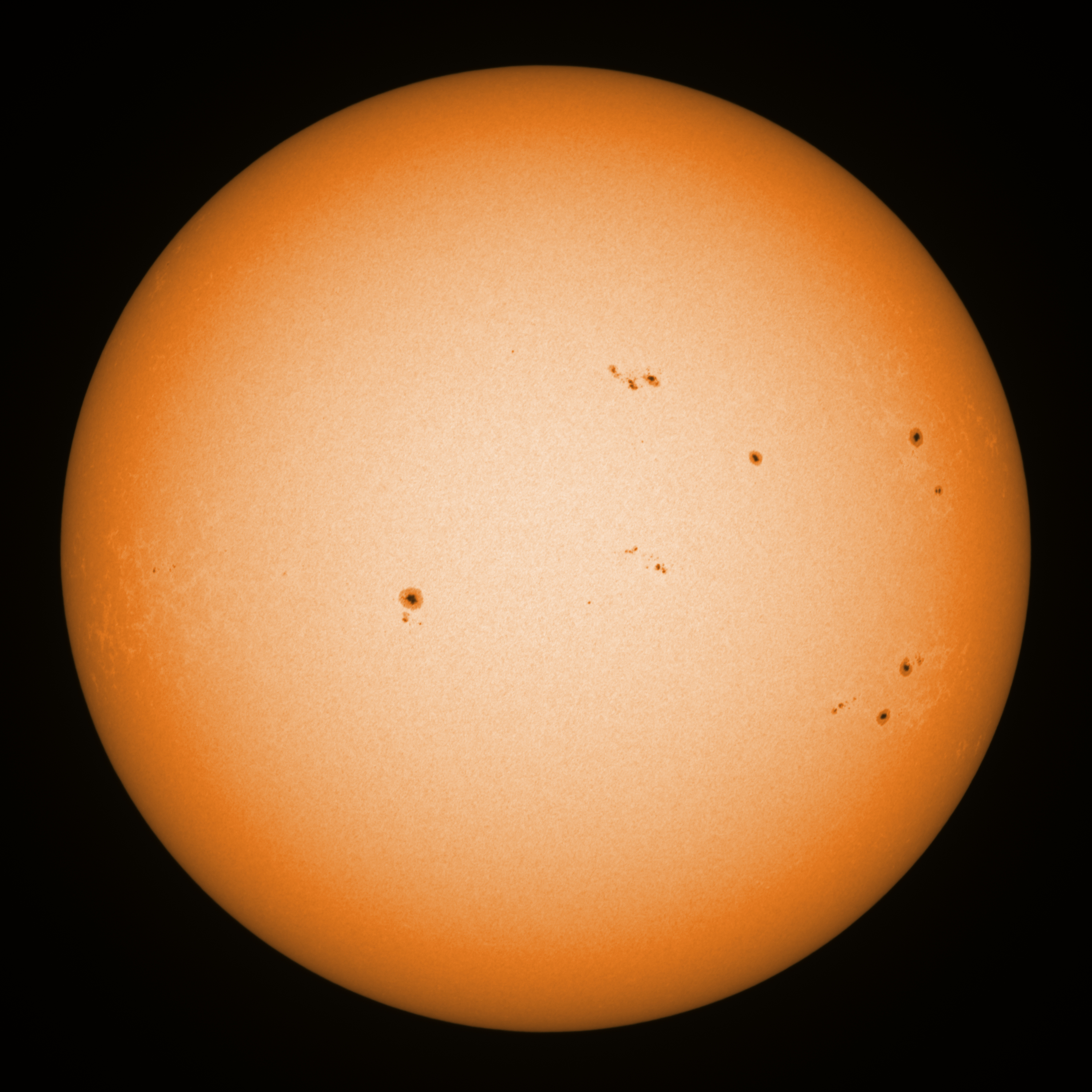 Observation date/time: 24 January 2026 09:49 UTC Telescope: GTT60 (Galileo Type Telescope) Focal length: 1490mm (plano convex singlet) Aperture: 60mm Stop: 30mm Eyepiece: -75mm (plano concave singlet, 24mm aperture) Observation type: projection (338mm distance, 80mm diameter) Reference: Earth's rotation axis Exposure (transparency): 0.980ms (using 82nm bandwidth green filter) Seeing (SSSMon): 2.3-2.5" (1.5" at best) =================================================================== Total number of sunspots: 24 | |