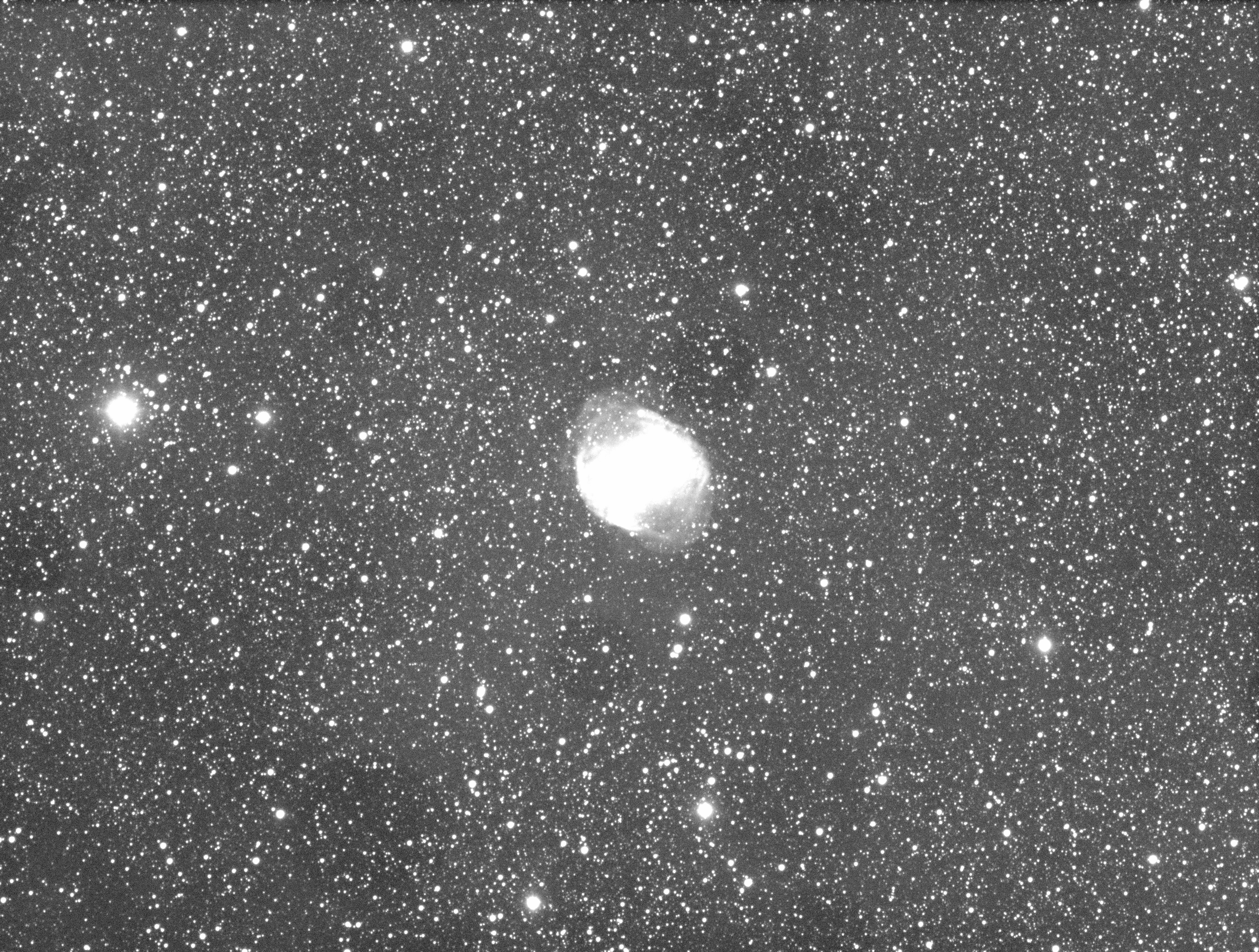 Deep-skyAlthough I am more interested in visual work, taking images of solar system and deep-sky objects is good fun as well. For the deep-sky imaging InFINNity Deck is equipped with a ZWO ASI1600MM Pro Cool camera and a ZWO Motorised Filter Wheel for 7 x 36 mm filters. The latter has been loaded with filters for Luminance, Red, Green, Blue, H-Alpha, O-III, and S-II. The narrow-band filters for H-alpha and S-ii were replaced in 2020 for the new versions that ZWO brought onto the market in 2018, as the old-style filters produce halos around the brightest stars. Currently the images are divided into the following sections: Nebula, Planetary Nebula, Clusters and Galaxies. 14 Vulpeculae: 10Micron GM3000 HPS tracking testThe 10Micron GM3000 HPS is said to be that accurate that guiding would not be necessary. Taking this at face value is easy enough, but I wanted to see proof of it. For this, after having made the exposures of M27, I decided to take another few frames using the SkyWatcher Esprit 150ED APO and ZWO ASI1600MM Pro Cool camera of that same area, but now at increasingly long exposures. The longest of these was a single exposure of 20 minutes (indeed, 1200 seconds!). So no guiding was done other than having the mount following the skies based on the internal model. I think the image, which is a crop around 14 Vulpeculae, speaks for itself. Click here for the full image. It has to be noted that these long period exposure do not work in all directions, something that is still under investigation by 10Micron and hopefully gets solved sooner or later. If you have any questions and/or remarks please let me know. |