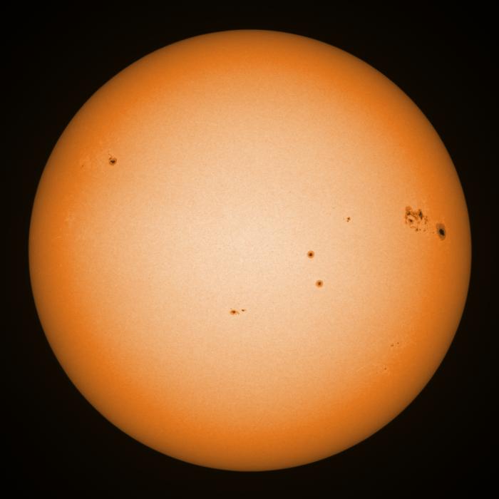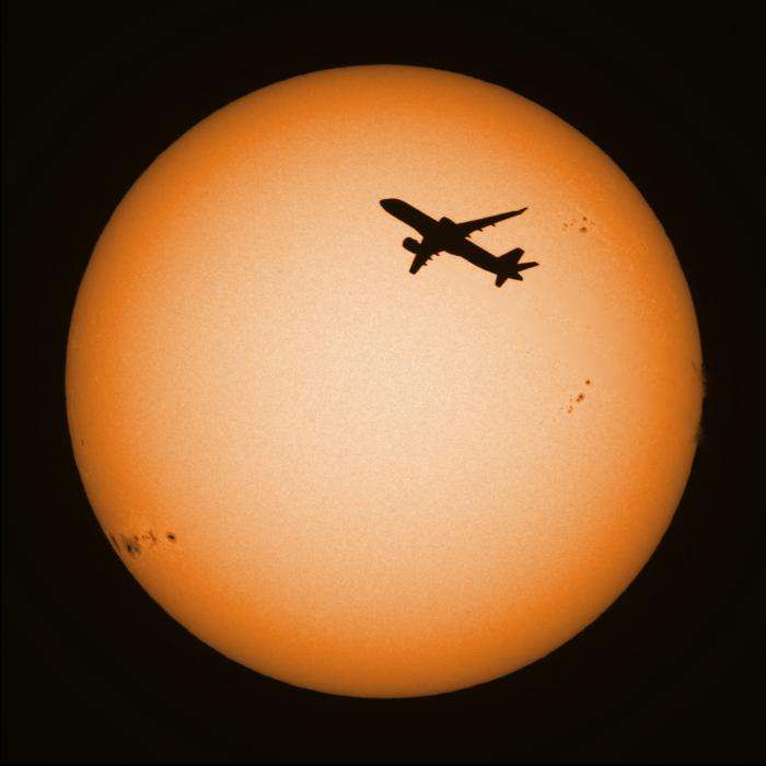 SunThe natural celestial objects nearest to earth are of course those found in our Solar System. Closest to earth is the moon, which gives stunning views, even at the lowest modest magnification. The Sun (see figure 92) is the closest star to earth. Light only takes 8 minutes to arrive here. Using the Lunt LS80THA nice images can be made of the granulation on its surface and of the solar flares (protuberances) around the edge. Using the SkyWatcher Esprit 150ED and a Baader white-light foil-filter images in the full visible spectrum can be taken, reveiling sunspots as if they were projected. All images on this page have been taken with a monochrome camera and are artificially coloured. 8 February 2026![]() Figure 1: The Sun imaged in H-alpha on 8 February 2026 @ 11:42UTC using Lunt LS80THA and ASI1600MM Pro Cool. On 8 February 2026 a very active zone appeared just north of AR4366 (the black area above the sunspot group near 3 o'clock in the image). Imaging in H-alpha was done around 11:42:50UTC using the Lunt LS80THA, TeleVue 2x PowerMate (so f/14), ZWO ADC and ZWO ASI1600MM Pro Cool. Some 250 frames were captured with FireCapture, manually triggered, only 25% of which were stacked in AutoStakkert!4 with 1.5px pre-blur, but without sharpening. In order to get rid of the last bayer-pattern artefacts the stack was given a 0.55px Gaussian blur in PSP and sharpened using an Unsharp Mask of first 1.1px and strength of 500, followed by another one of 10px and strength of 20 (no clipping in both cases). Then it was ran through ImPPG to invert the histogram, but without any deconvolution or sharpening. Finally it was given another 0.55% Gaussian Blur to remove Unsharp Mask artefacts, followed by my default colour, a default Sharpen More, and 19% Vibrancy. The original image can be found here. In whitelight the very active area just above AR4366 does not show. Image taken using SkyWatcher Esprit 150ED, ZWO green filter, and ZWO ASI1600MM Pro Cool, stack of best 23 frames out of 250. In post-processing only a Sharpen more was applied in PSP and the colour added. 30 November 2025On this day I caught yet another airplane while imaging the Sun. 29 June 2025![]() Figure 4: The Sun imaged on 29 June 2025 around 12:23:51UTC with the Lunt LS80THA and ZWO ASI1600MM Pro Cool. On 29 June 2025 a huge prominence detached from the solar surface. Using the Lunt LS80THA I imaged the Sun in H-alpha. Capture was done around 12:23:51UTC with the Lunt LS80THA, TeleVue 2x PowerMate (so f/14), ZWO ADC and ZWO ASI1600MM Pro Cool. Some 250 frames were captured with FireCapture, manually triggered, only 25% of which were stacked in AutoStakkert!4 with 1.5px pre-blur, but without sharpening. In order to get rid of the last bayer-pattern artefacts the stack was given a 0.55px Gaussian blur in PSP and sharpened using an Unsharp Mask of first 1.1px and strength of 500, followed by another one of 10px and strength of 20 (no clipping in both cases). Then it was ran through ImPPG to invert the histogram, but without any deconvolution or sharpening. Finally it was given another 0.55% Gaussian Blur to remove Unsharp Mask artefacts, followed by my default colour, a default Sharpen More, and 19% Vibrancy. The original image can be found here. ![]() Figure 5: The Sun imaged on 29 June 2025 around 12:45:39UTC with the Esprit150ED and ZWO ASI1600MM Pro Cool. Some twenty minutes later I captured the Sun in whitelight using the SkyWatcher Esprit 150ED, ZWO green filter and ZWO ASI1600MM Pro Cool. Using AutoStakkert!4 23 frames were stacked without sharpening. Then in PSP a default sharpen more was applied, followed by my default colour. The original image can be found here. 14 June 2025On 14 June 2025 we finally had some decent seeing of around 1 arc-second, so after the daily sunspot number count I installed a ZWO ASI1600MM Pro Cool behind the Lunt LS80THA to image the Sun in H-alpha. There was some light clouds that made it difficult to stack the data. Capture was done around 09:14UTC with the Lunt LS80THA, TeleVue 2x PowerMate (so f/14), ZWO ADC and ZWO ASI1600MM Pro Cool (I moved from the QHYCCD QHY163 mono to the ZWO camera earlier this year). Some 250 frames were captured with FireCapture, manually triggered, only 25% of which were stacked in AutoStakkert!4 with 1.5px pre-blur, but without sharpening. In order to get rid of the last bayer-pattern artefacts the stack was given a 0.55px Gaussian blur in PSP and sharpened using an Unsharp Mask of first 1.1px and strength of 500, followed by another one of 10px and strength of 20 (no clipping in both cases). Then it was ran through ImPPG to invert the histogram, but without any deconvolution or sharpening. Finally it was given another 0.55% Gaussian Blur to remove Unsharp Mask artefacts, followed by my default colour, a default Sharpen More, and 19% Vibrancy. The original image can be found here. I superimposed the Earth and Jupiter to scale in the image to show the enormity of the protuberance. Another three recordings were made that day, but not as good as the one shown above. Still they could be used to produce adjacent animation. Somewhat earlier that day, around 08:39UTC, imaging was done with the SkyWatcher Esprit 150ED, a ND5.0 solar foil filter, a ZWO green filter and ZWO ASI1600MM Pro Cool. A recording of 250 frames was processed in AutoStakkert without sharpening (23 frames stacked). Post-processing was done in PSP (Sharpen More, artificial colouring). The original image can be found here. 28 March 2025On this day we had a partial solar eclipse in the Netherlands. Some 160Gb of data was collected with the SkyWatcher Esprit 150ED and Lunt LS80THA of which this is the first image, taken with the Esprit around the eclipse maximum. Imaging was done with a ND5.0 solar foil filter, a ZWO green filter and ZWO ASI1600MM Pro Cool. A recording of 100 frames was processed in AutoStakkert without sharpening. Postprocessing was done in PSP (Sharpen More, artificial colouring). The origina