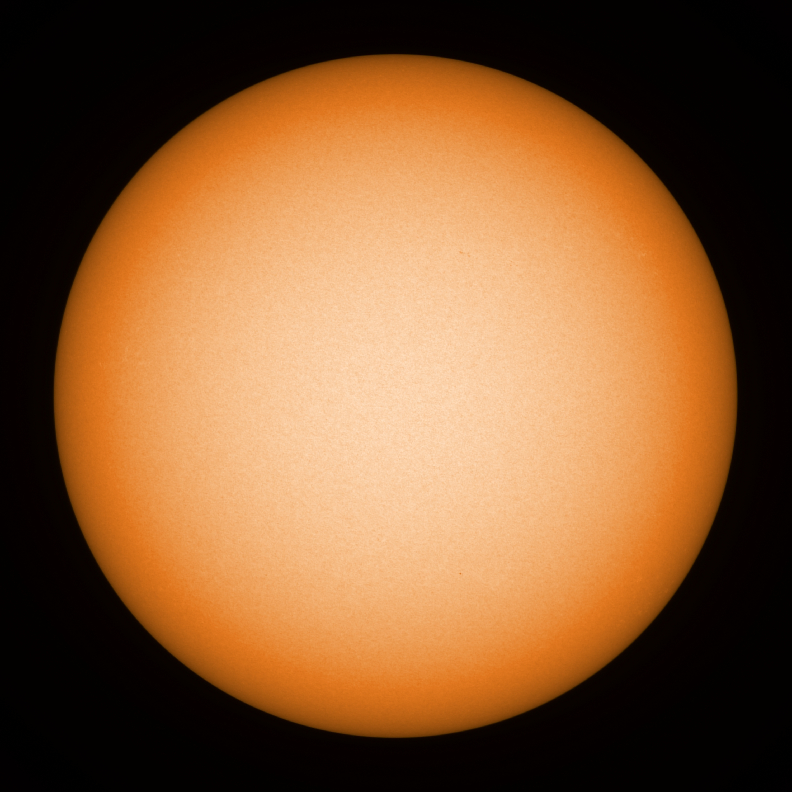 Observation date/time: 27 July 2021 @ 13:02 UTC Telescope: GTT60 (Galileo Type Telescope) Focal length: 1490mm (plano convex singlet) Aperture: 60mm Stop: 30mm Eyepiece: -75mm (plano concave singlet, 24mm aperture) Observation type: projection (353mm distance, 80mm diameter) Reference: Earth's rotation axis =================================================================== Total number of sunspots: 0 | |