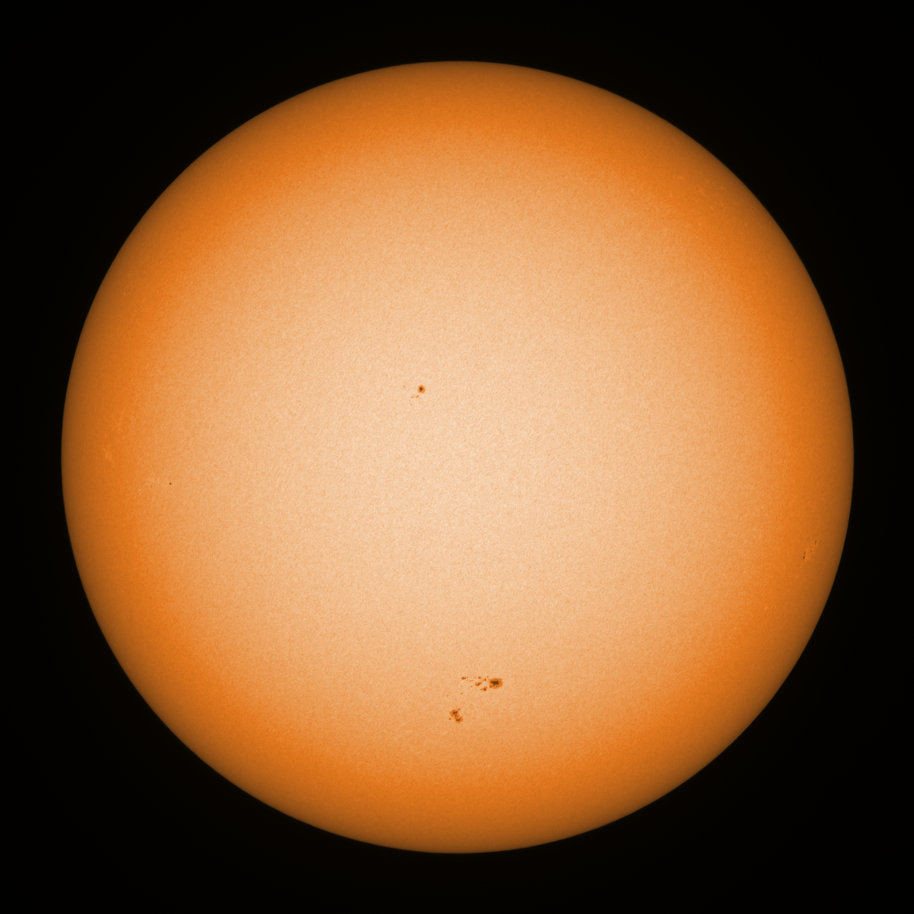 Observation date/time: 27 August 2021 @ 08:15 UTC Telescope: GTT60 (Galileo Type Telescope) Focal length: 1490mm (plano convex singlet) Aperture: 60mm Stop: 30mm Eyepiece: -75mm (plano concave singlet, 24mm aperture) Observation type: projection (351mm distance, 80mm diameter) Reference: Earth's rotation axis =================================================================== Total number of sunspots: 9 | |