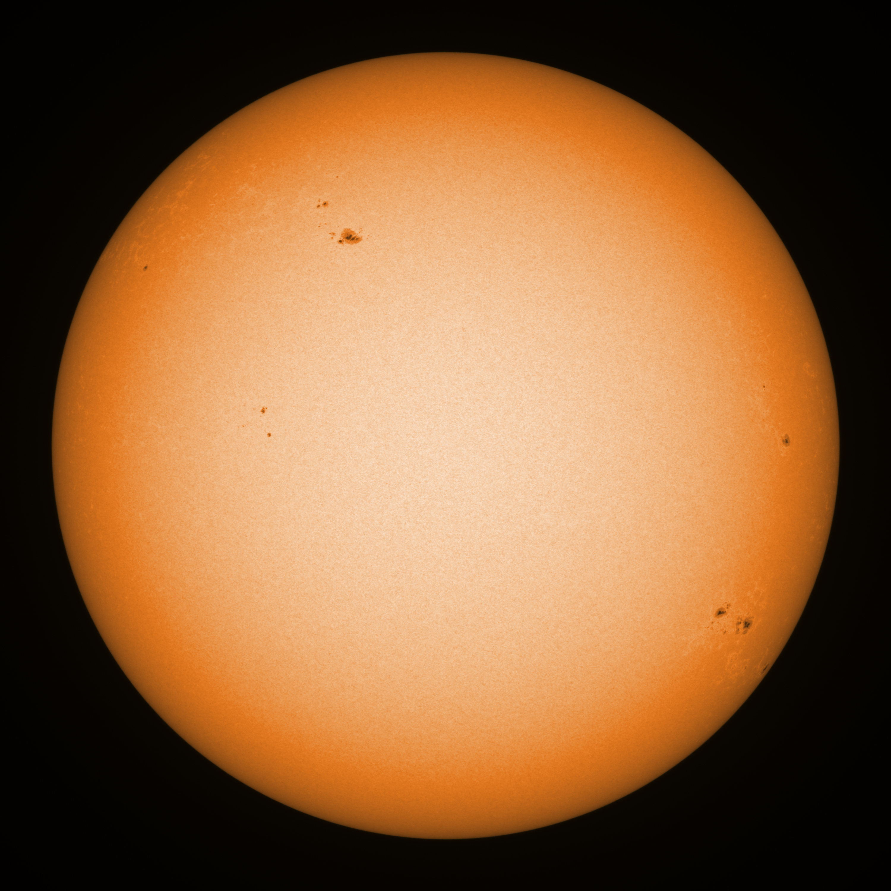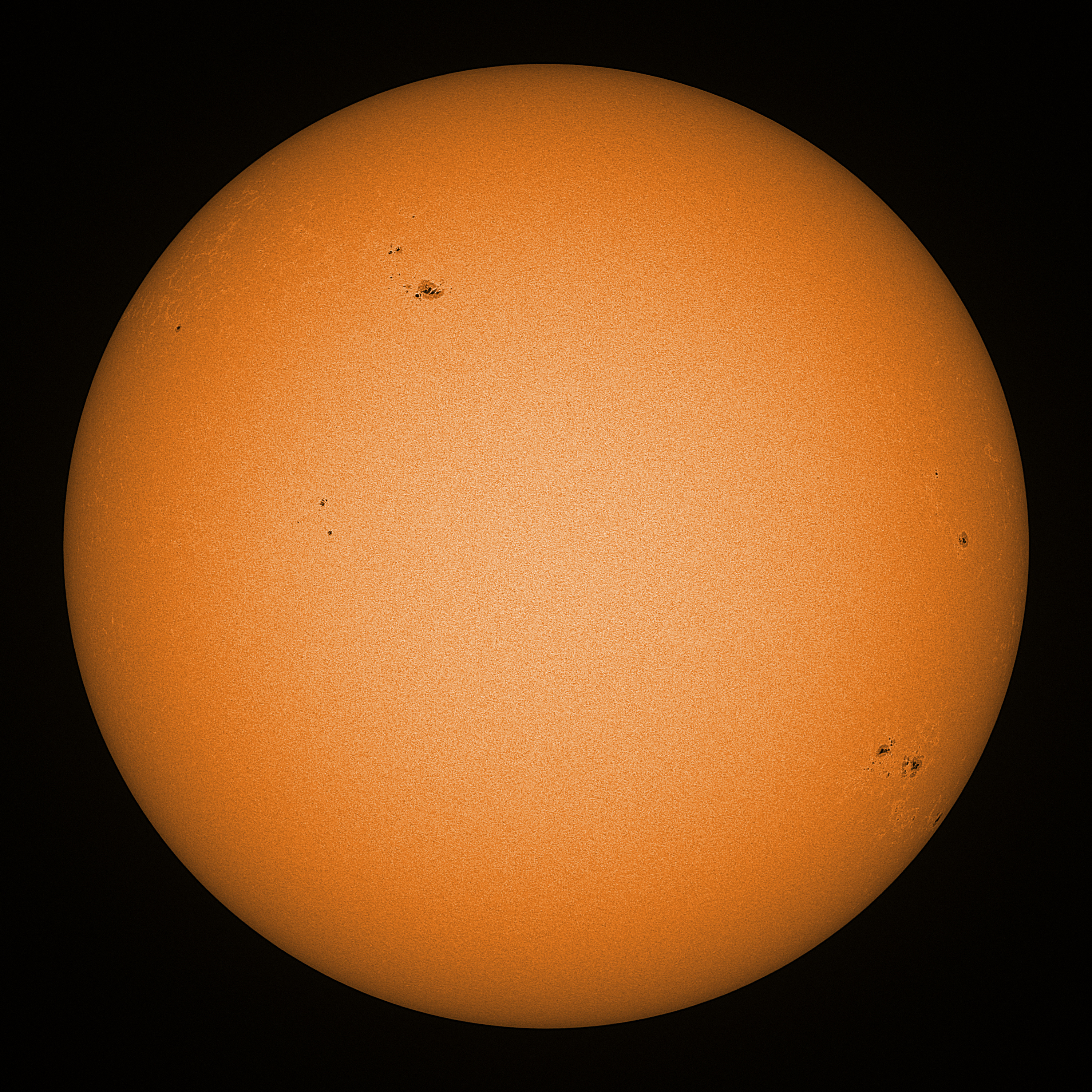 Observation date/time: 26 February 2025 10:44 UTC Telescope: GTT60 (Galileo Type Telescope) Focal length: 1490mm (plano convex singlet) Aperture: 60mm Stop: 30mm Eyepiece: -75mm (plano concave singlet, 24mm aperture) Observation type: projection (342mm distance, 80mm diameter) Reference: Earth's rotation axis Exposure (transparency): 0.480ms (using 82nm bandwidth green filter) Seeing (SSSMon): 2.5-3.0" (1.8" at best) =================================================================== Total number of sunspots: 24 | |