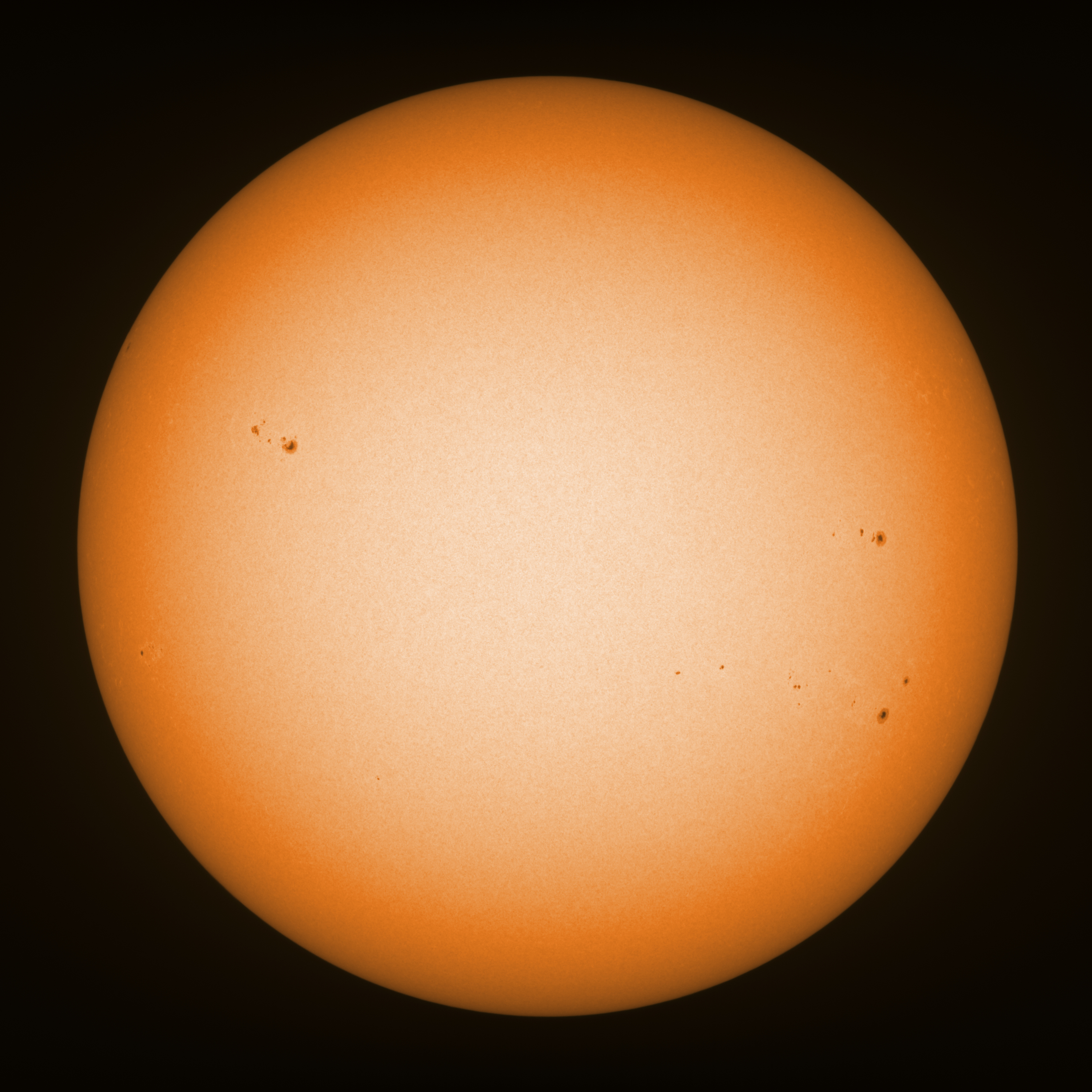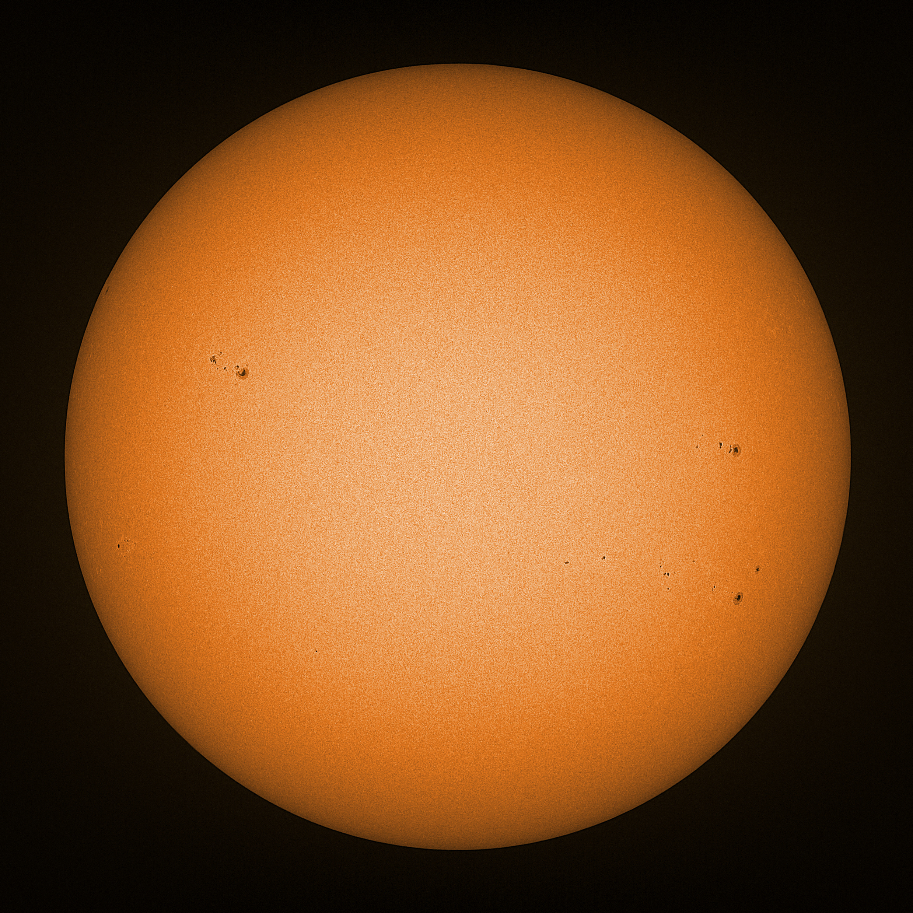 Observation date/time: 27 June 2025 10:08 UTC Telescope: GTT60 (Galileo Type Telescope) Focal length: 1490mm (plano convex singlet) Aperture: 60mm Stop: 30mm Eyepiece: -75mm (plano concave singlet, 24mm aperture) Observation type: projection (348mm distance, 80mm diameter) Reference: Earth's rotation axis Exposure (transparency): 0.580ms (using 82nm bandwidth green filter) Seeing (SSSMon): 2.5-3.0" (1.4" at best) =================================================================== Total number of sunspots: 20 | |
