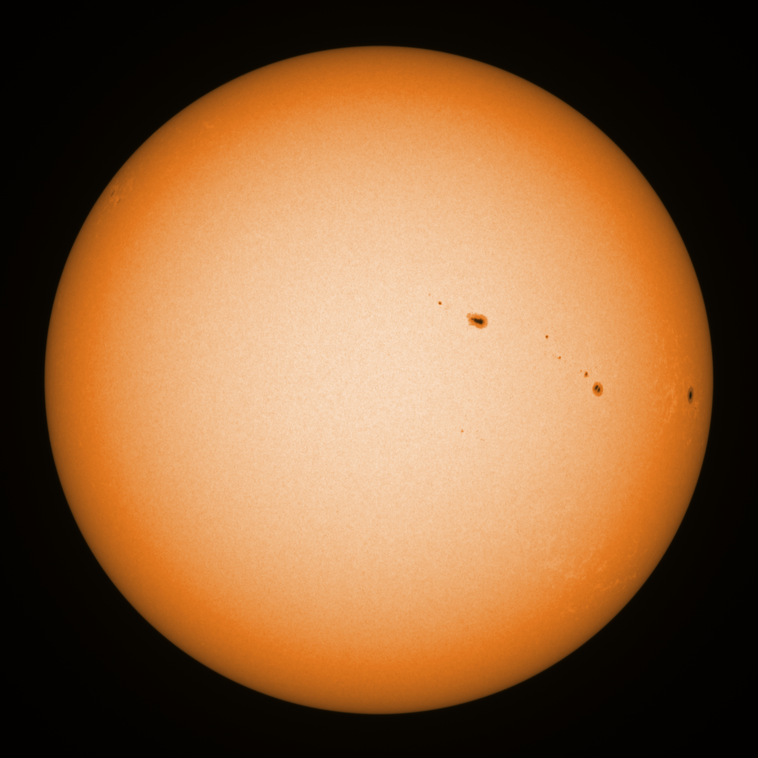 Observation date/time: 08 March 2026 14:06 UTC Telescope: GTT60 (Galileo Type Telescope) Focal length: 1490mm (plano convex singlet) Aperture: 60mm Stop: 30mm Eyepiece: -75mm (plano concave singlet, 24mm aperture) Observation type: projection (342mm distance, 80mm diameter) Reference: Earth's rotation axis Exposure (transparency): 1.060ms (using 82nm bandwidth green filter) Seeing (SSSMon): 6.0-6.5" (3.5" at best) =================================================================== Total number of sunspots: 13 | |