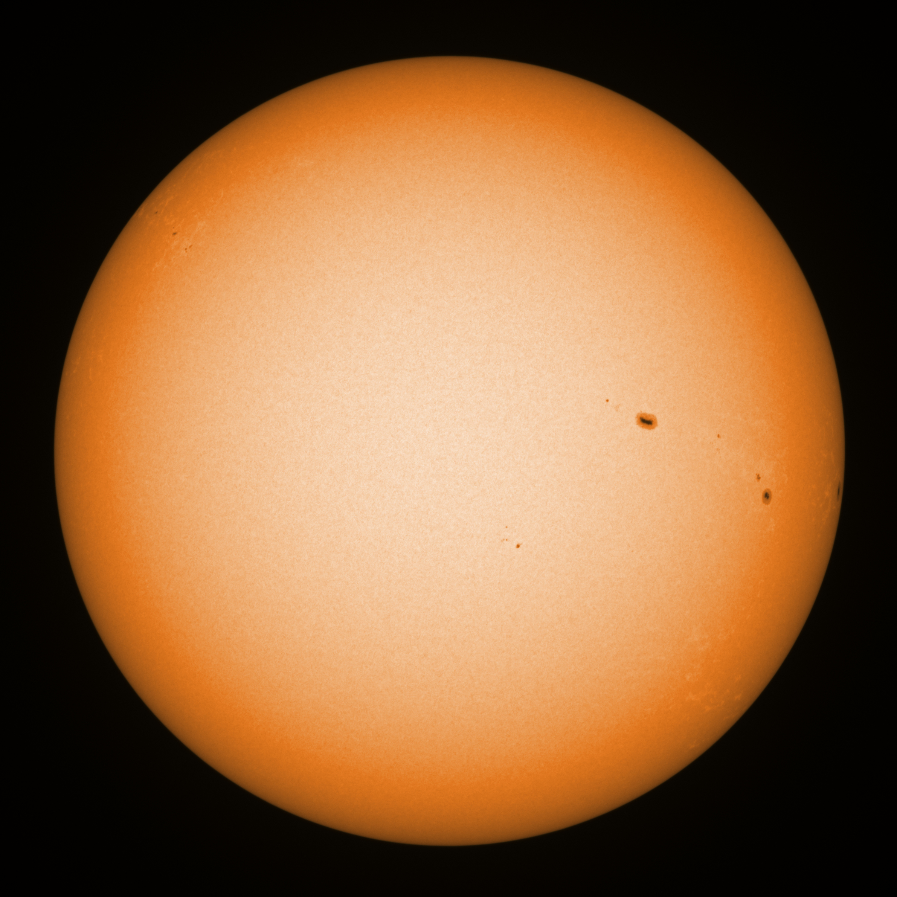Observation date/time: 09 March 2026 15:25 UTC Telescope: GTT60 (Galileo Type Telescope) Focal length: 1490mm (plano convex singlet) Aperture: 60mm Stop: 30mm Eyepiece: -75mm (plano concave singlet, 24mm aperture) Observation type: projection (342mm distance, 80mm diameter) Reference: Earth's rotation axis Exposure (transparency): 1.960ms (using 82nm bandwidth green filter) Seeing (SSSMon): 5.0-7.0" (2.0" at best) =================================================================== Total number of sunspots: 12 | |