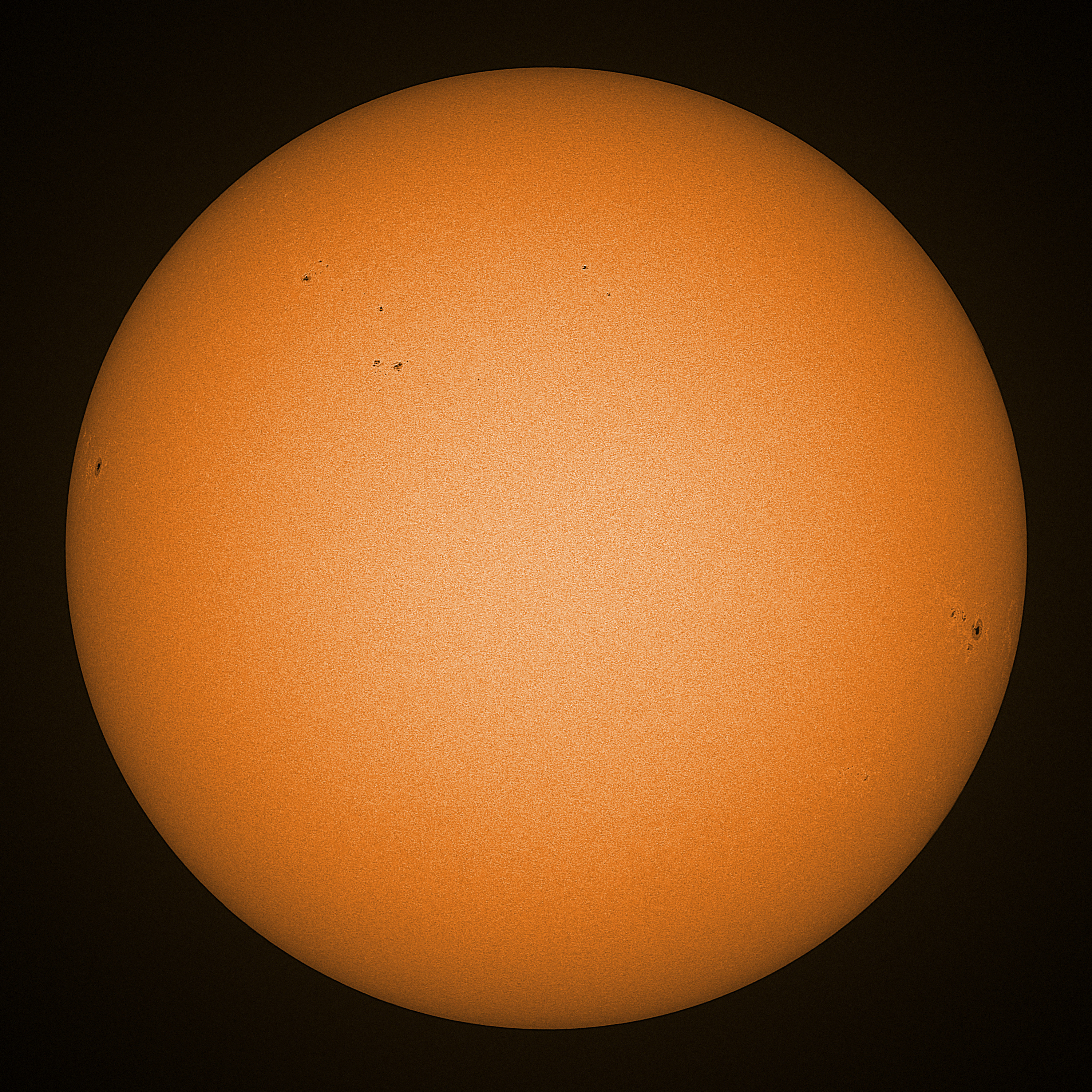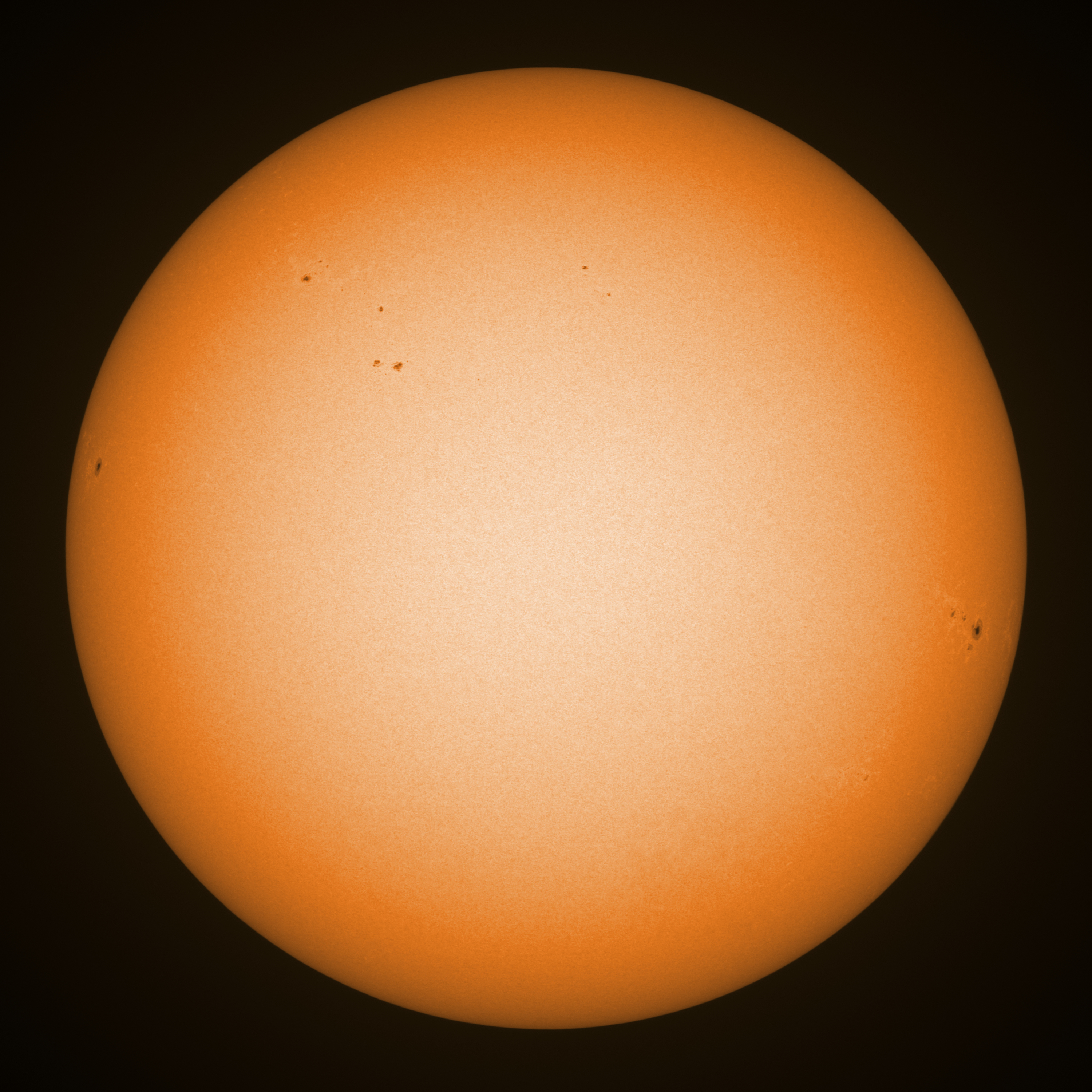 Observation date/time: 12 March 2026 12:20 UTC Telescope: GTT60 (Galileo Type Telescope) Focal length: 1490mm (plano convex singlet) Aperture: 60mm Stop: 30mm Eyepiece: -75mm (plano concave singlet, 24mm aperture) Observation type: projection (343mm distance, 80mm diameter) Reference: Earth's rotation axis Exposure (transparency): 0.930ms (using 82nm bandwidth green filter) Seeing (SSSMon): 1.2-1.4" (0.7" at best) =================================================================== Total number of sunspots: 11 | |