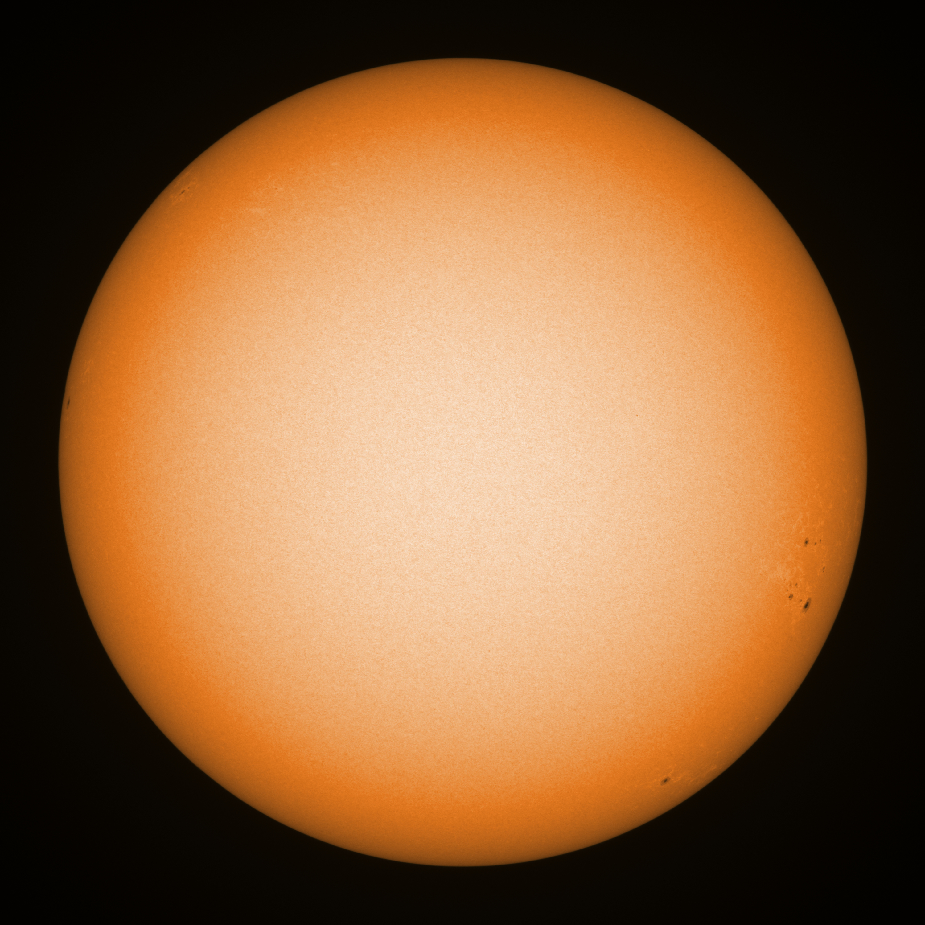 Observation date/time: 08 April 2026 08:02 UTC Telescope: GTT60 (Galileo Type Telescope) Focal length: 1490mm (plano convex singlet) Aperture: 60mm Stop: 30mm Eyepiece: -75mm (plano concave singlet, 24mm aperture) Observation type: projection (345mm distance, 80mm diameter) Reference: Earth's rotation axis Exposure (transparency): 0.430ms (using 82nm bandwidth green filter) Seeing (SSSMon): 2.5-3.0" (1.5" at best) =================================================================== Total number of sunspots: 13 | |